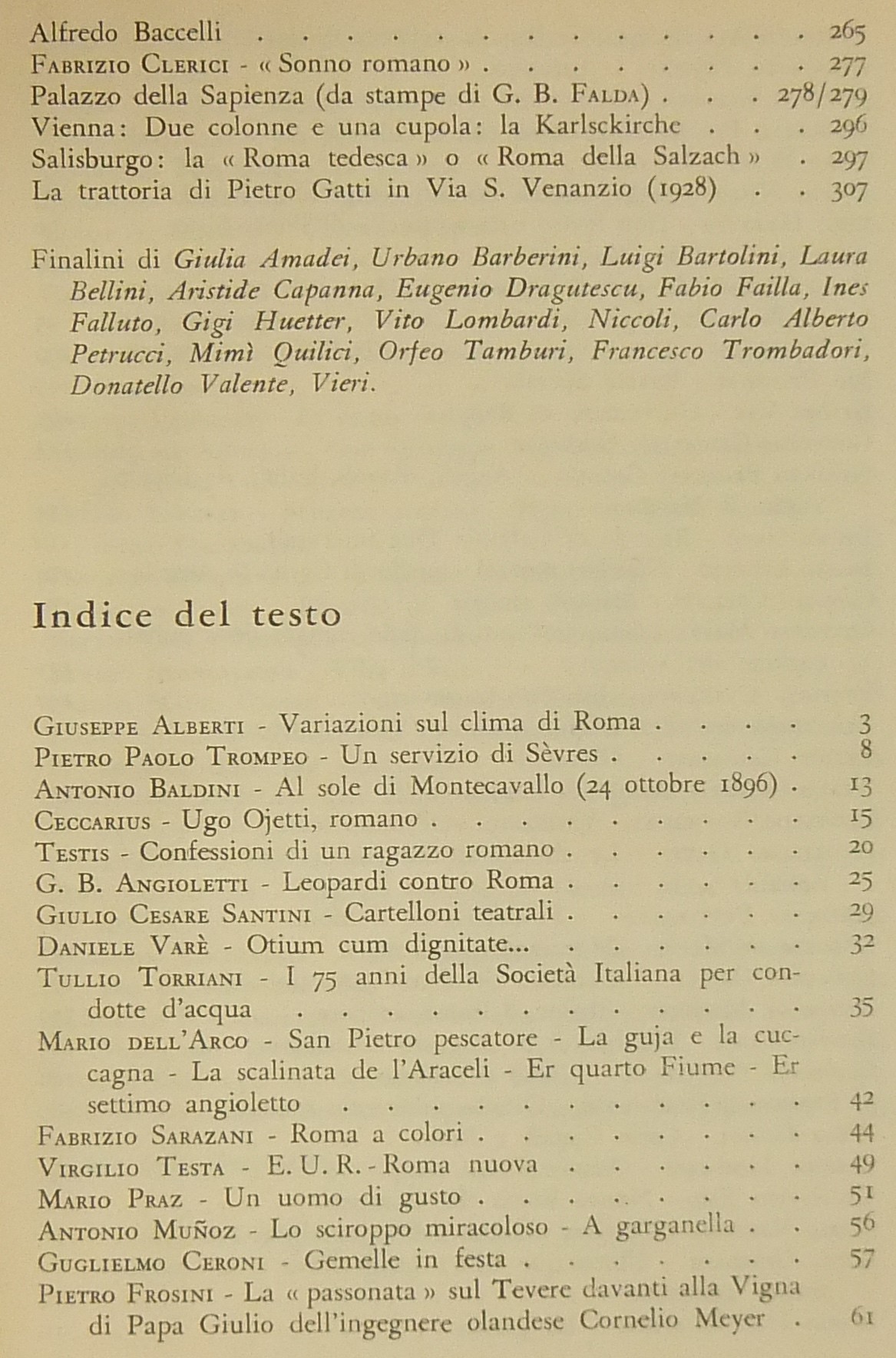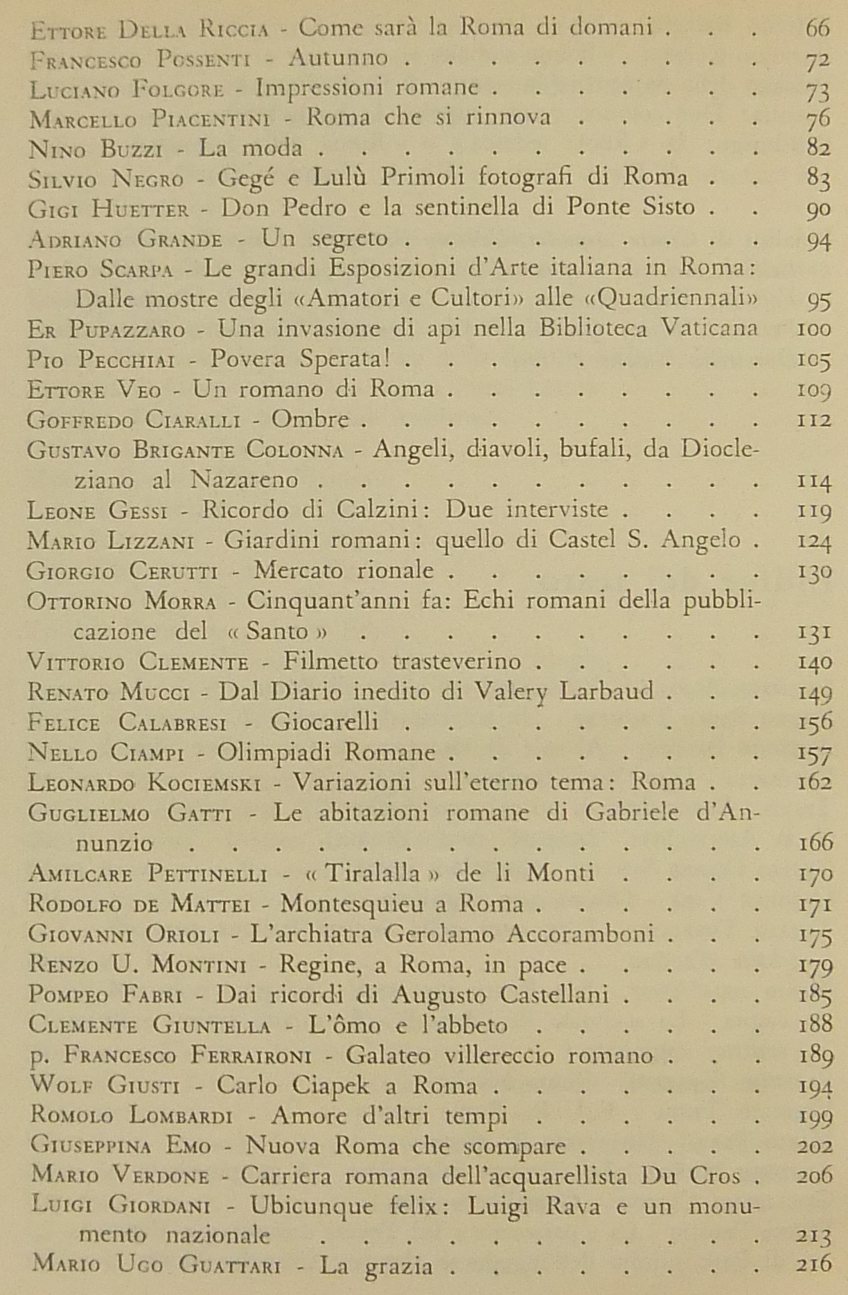 Testi di Antonio Baldini, Ceccarius, Mario dell’Arco, Mario Praz, Luciano Folgore, Marcello Piacentini, Pio Pecchiai, Leone Gessi, Mario Lizzani, Mario Verdone, Luigi Bartolini, Ottavio Lanciotti et al.