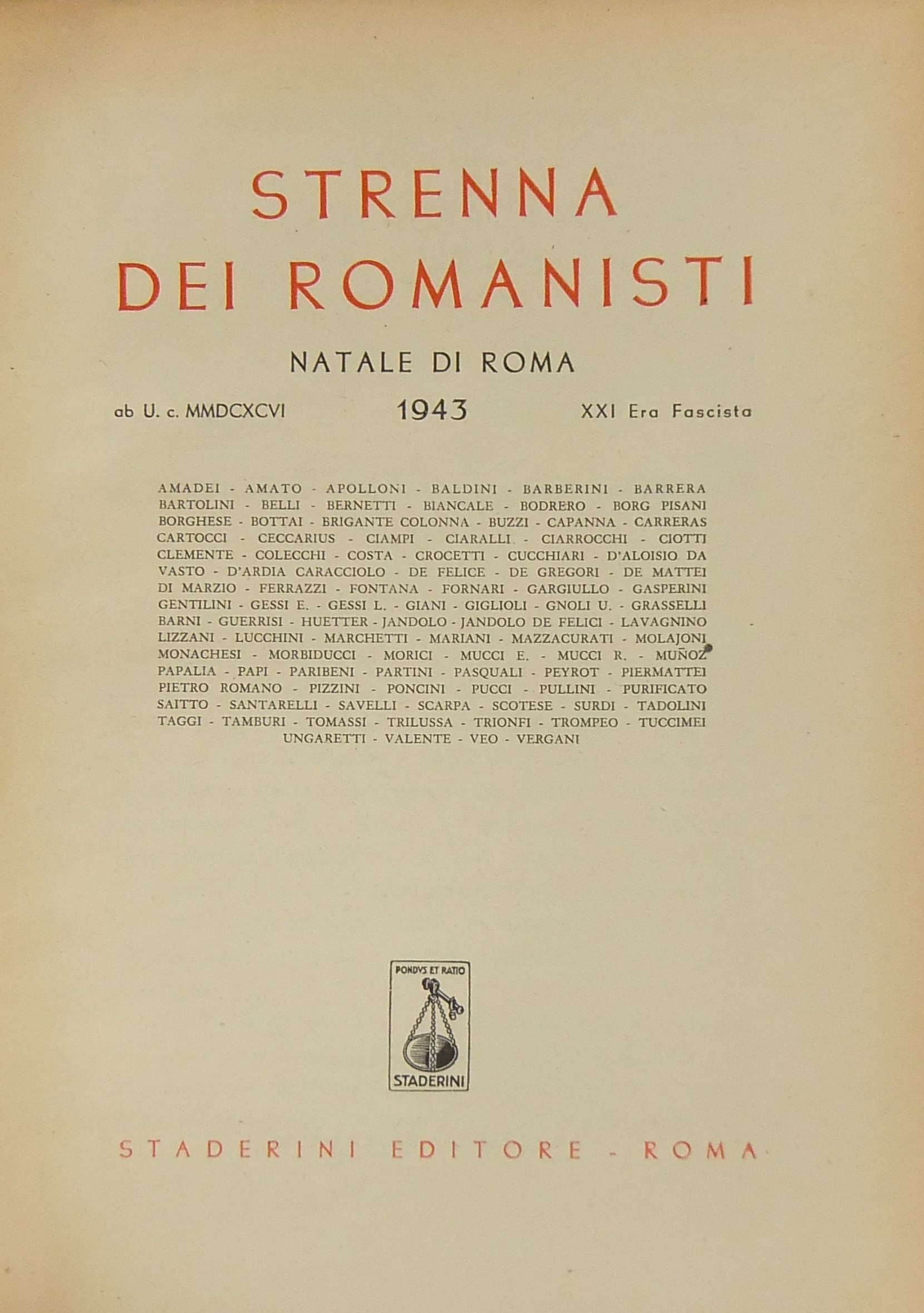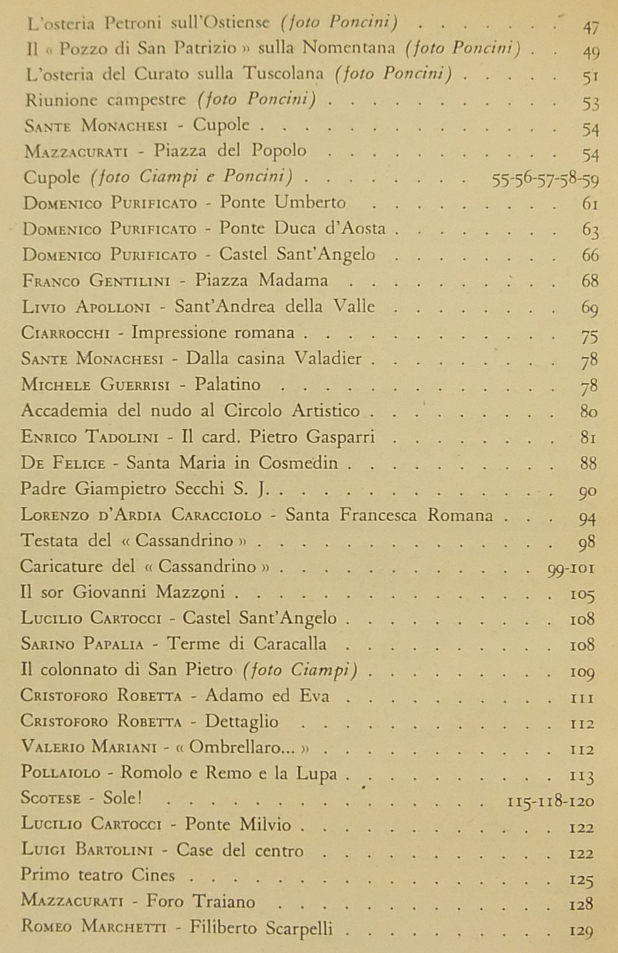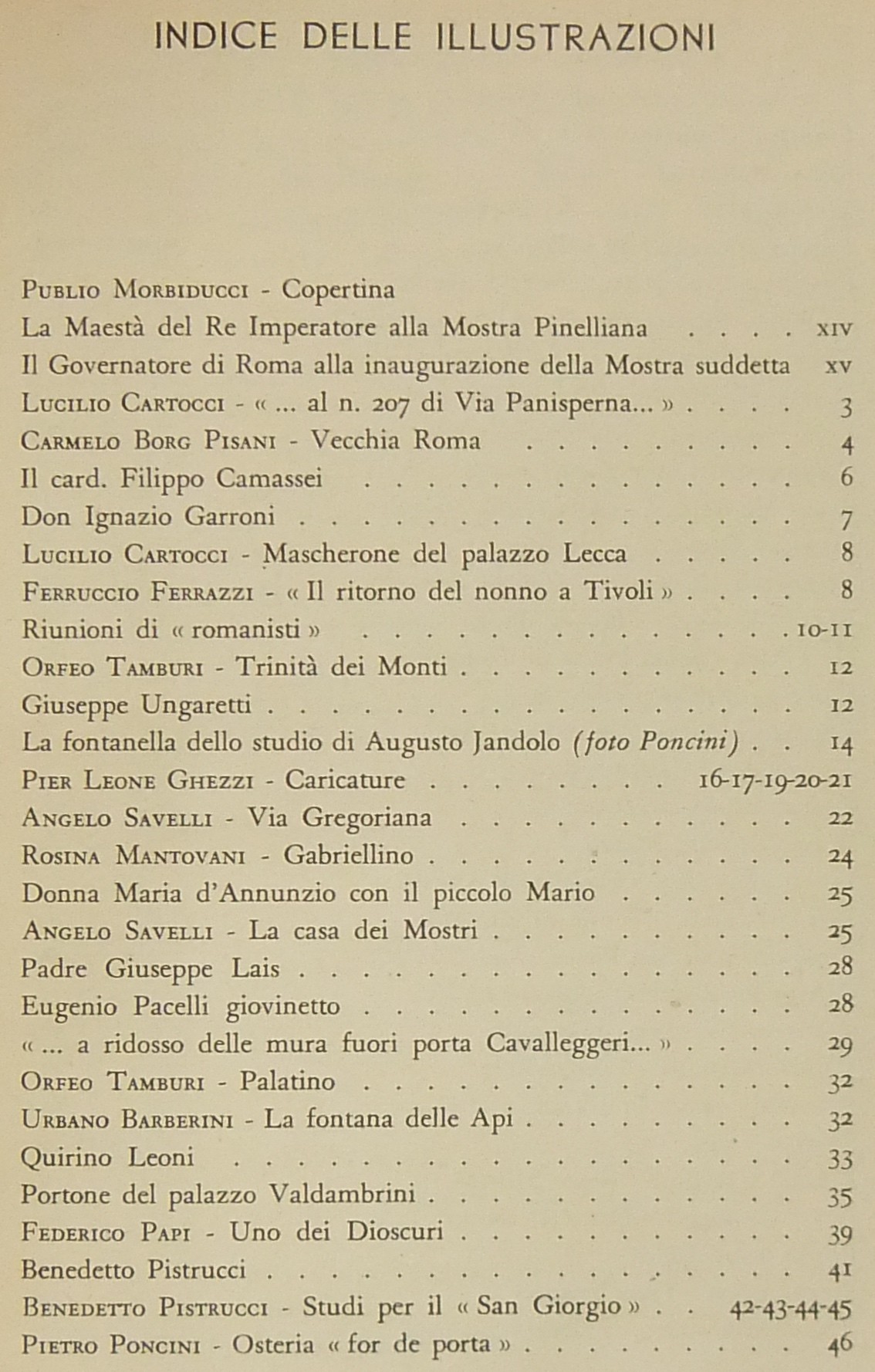 Testi di Gian Giacomo Borghese, Raffaello Santarelli, Franco Lucchini, Trilussa, Antonio Baldini, Giorgio Pasquali, Giuseppe Ungaretti, Giuseppe Bottai, Augusto Jandolo, Luigi De Gregori, Orio Vergani, Umberto Gnoli, Enrico Tadolini, Ceccarius, Mario Lizzani, Ettore Veo, Valerio Mariani, Piero Scarpa, Alceste Trionfi, Antonio Munoz, Rodolfo De Mattei, Gustavo Brigante Colonna, Emma Amadei, Pio Molajoni, Leone Gessi et al.