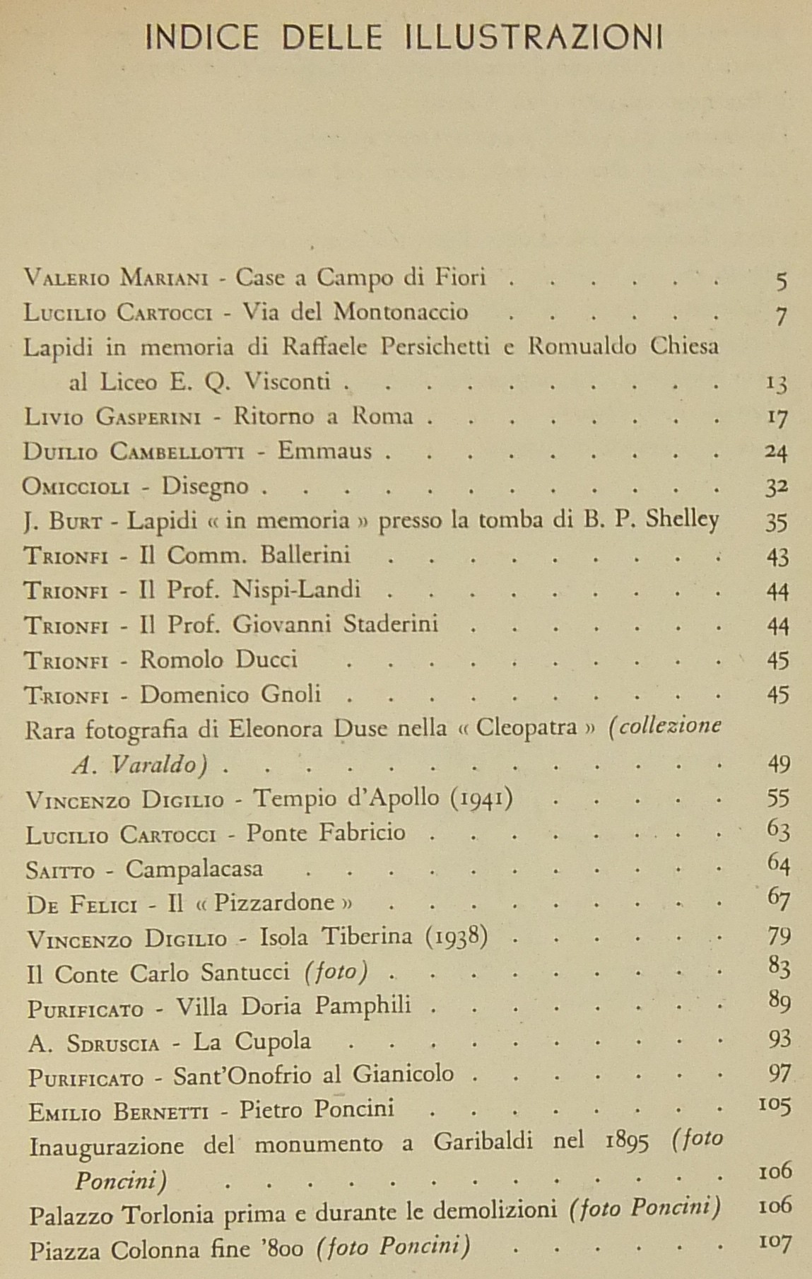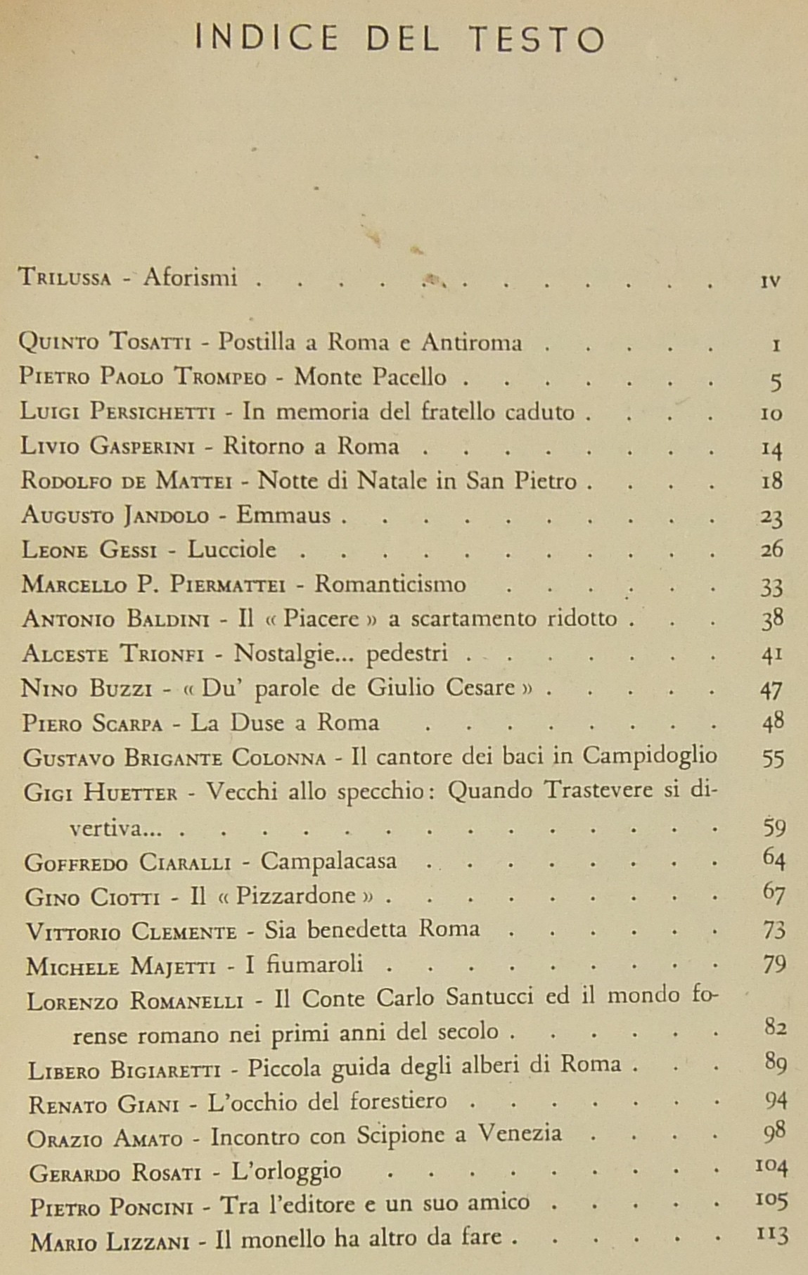 Testi di Trilussa, Luigi Persichetti, Rodolfo De Mattei, Augusto Jandolo, Leone Gessi, Antonio Baldini, Alceste Trionfi, Nino Buzzi, Piero Scarpa, Gustavo Brigante Colonna, Gigi Huetter, Vittorio Clemente, Libero Bigiaretti, Mario Lizzani, Emma Amadei, Ettore Veo, Pio Pecchiai, Antonio Munoz et al.