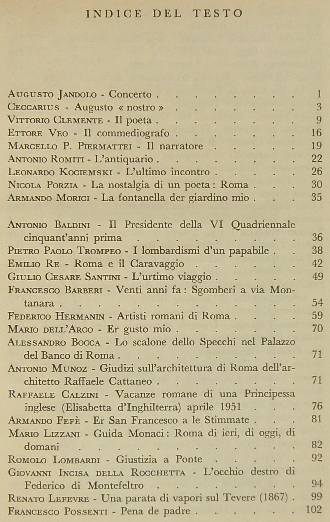 Numero dedicato ad Augusto Jandolo, scomparso poco prima della pubblicazione. Testi di Augusto Jandolo, Ceccarius, Vittorio Clemente, Ettore Veo, Antonio Baldini, Emilio Re, Giulio Cesare Santini, Mario dell’Arco, Antonio Munoz, Raffaele Calzini, Mario Lizzani, Giovanni Incisa della Rocchetta, Pio Pecchiai, Nino Buzzi, Gustavo Brigante Colonna, Alessandro Blasetti, Luigi Huetter, Piero Scarpa, Rodolfo de Mattei, Ottavio Lanciotti, Leone Gessi, Luigi Bartolini, Antonio Spinola, Fra Piselli, Mario Verdone, Ottorino Morra, Alberto de Angelis, Luigi Giordani, Emma Amadei et al.