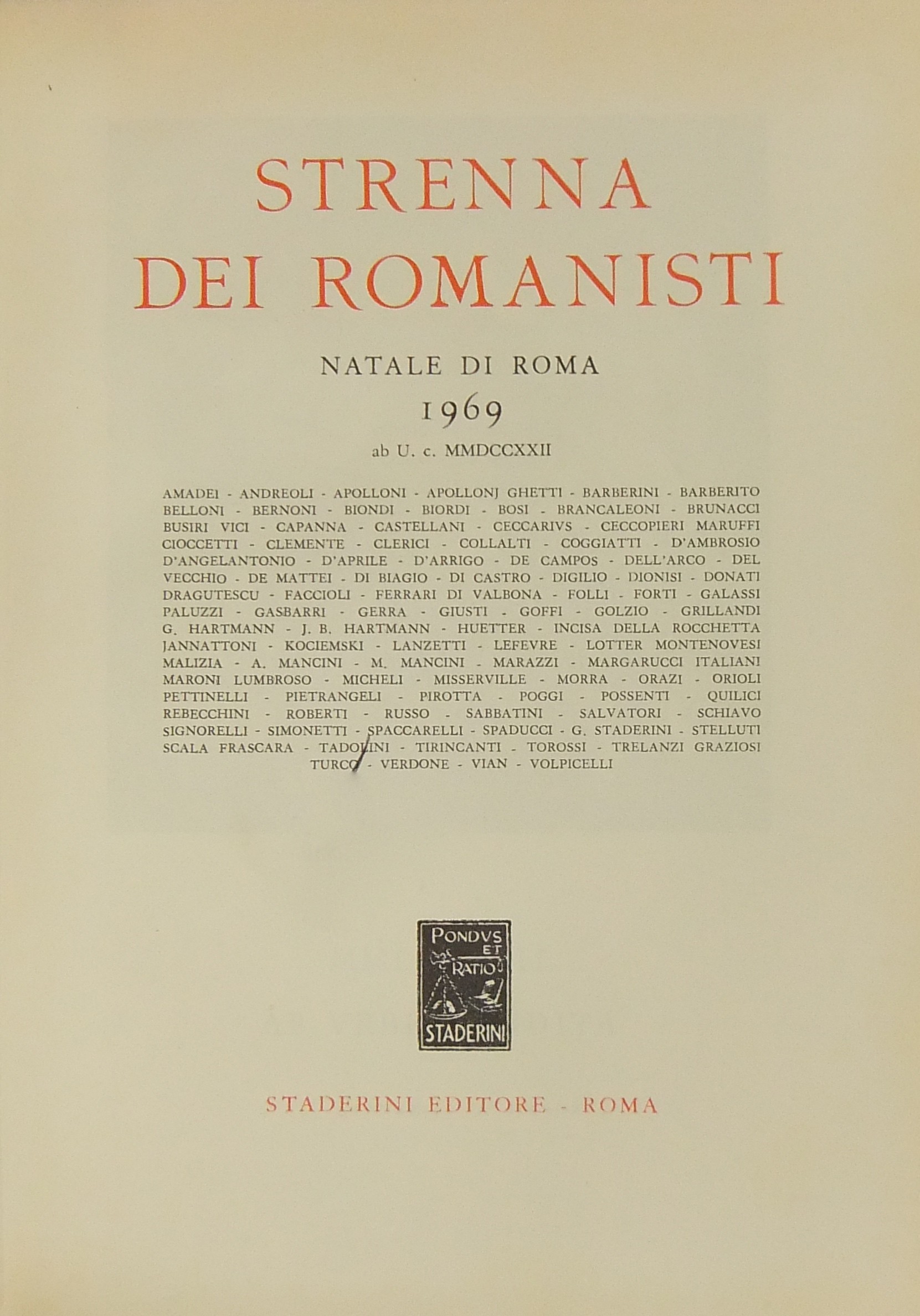 Strenna dei romanisti. Natale di Roma. N. 30 - 1969