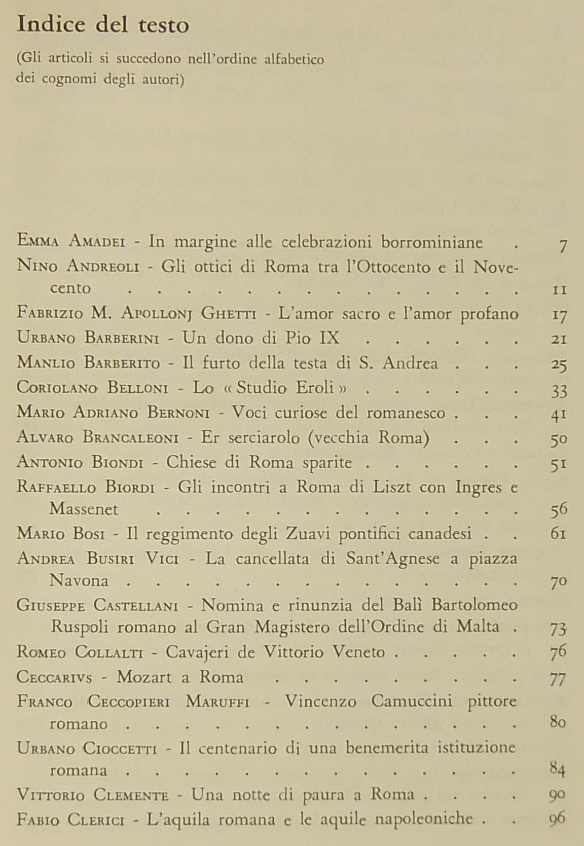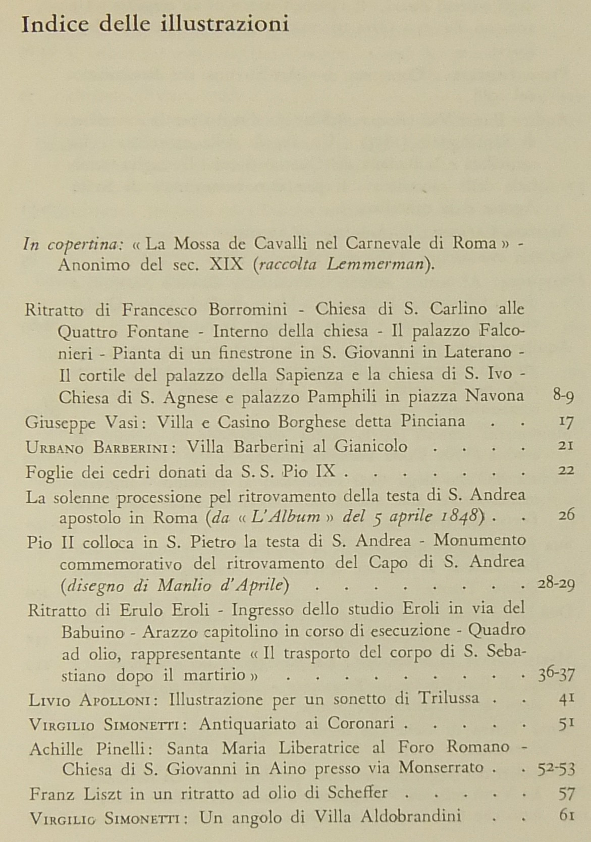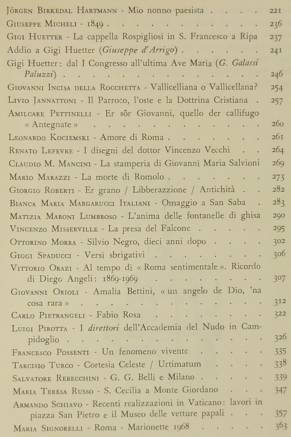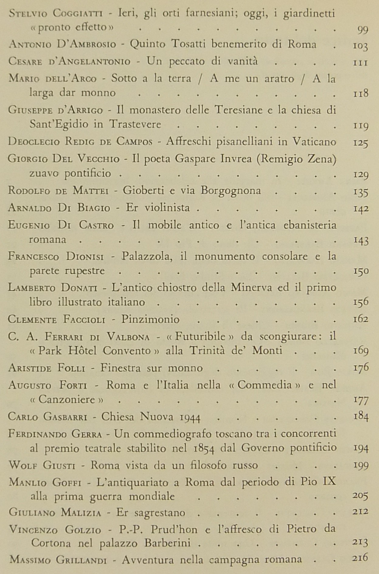 Testi di: Emma Amadei, Nino Andreoli, Fabrizio M. Apollonj Ghetti, Urbano Barberini, Giuseppe Castellani, Ceccarius, Vittorio Clemente, Fabio Clerici, Stelvio Coggiatti, Mario dell'Arco, Giuseppe d'Arrigo, Giorgio Del Vecchio, Eugenio Di Castro, Francesco Dionisi, Lamberto Donati, Giuseppe Micheli, Gigi Huetter, Livio Jannattoni, Amilcare Pettinelli, Claudio M. Mancini, Mario Marazzi, Ottorino Morra, Giovanni Orioli, Luigi Pirotta, Maria Signorelli, Scipione Tadolini, Mario Verdone, Nello Vian, Luigi Volpicelli et alii