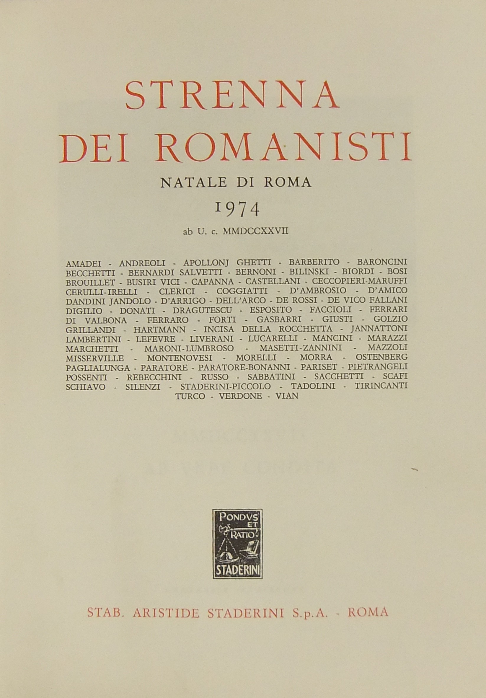 Strenna dei romanisti. Natale di Roma. N. 35 - 1974