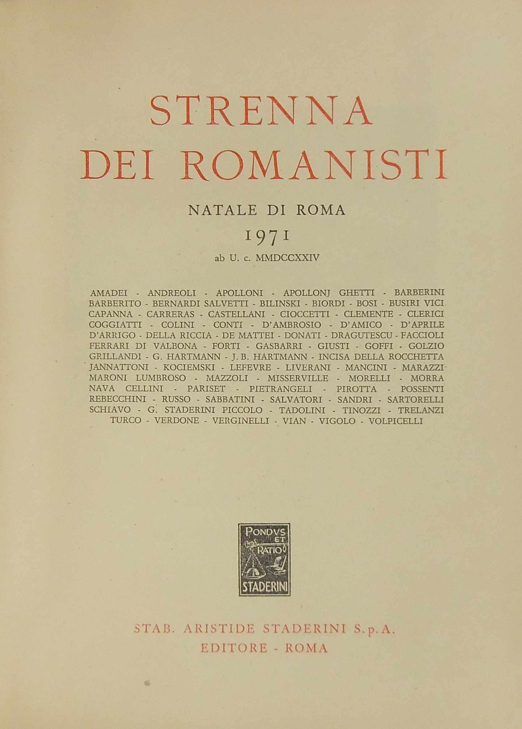 Strenna dei romanisti. Natale di Roma. N. 32 - 1971