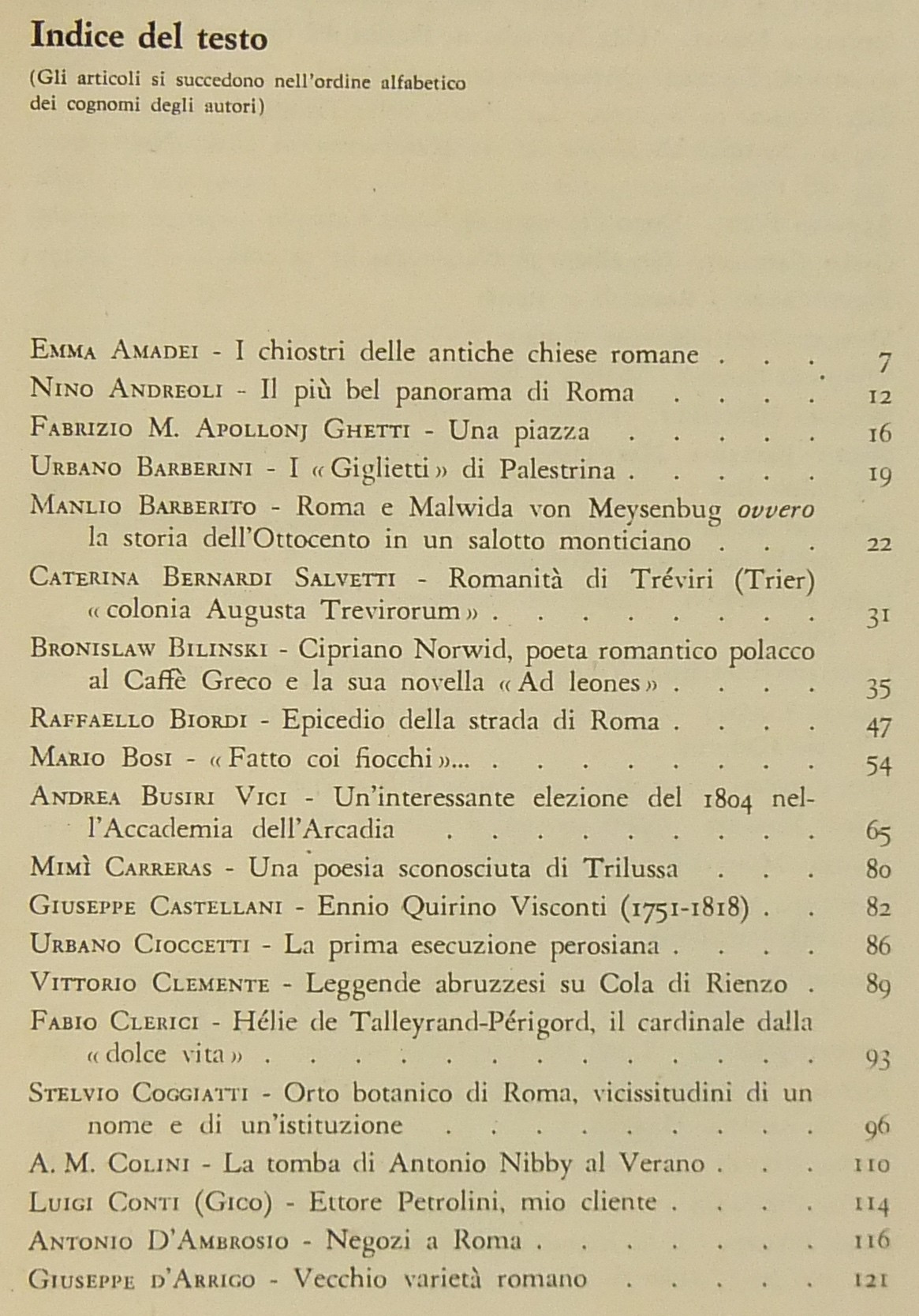 Testi di Emma Amadei, Nino Andreoli, Fabrizio M. Apollonj Ghetti, Urbano Barberini, Giuseppe Castellani, Vittorio Clemente, Fabio Clerici, Stelvio Coggiatti, Giuseppe d’Arrigo, Lamberto Donati, Dante Pariset, Salvatore Rebecchini, Mario Verdone, Nello Vian, Luigi Volpicelli et al.