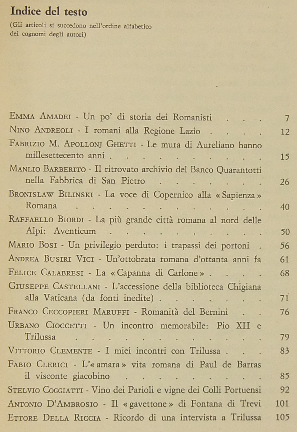 Testi di Emma Amadei, Nino Andreoli, Fabrizio M. Apollonj Ghetti, Giuseppe Castellani, Livio Jannattoni, Ettore Paratore, Fernando Stoppani, Mario Verdone, Nello Vian, Luigi Volpicelli et al.
