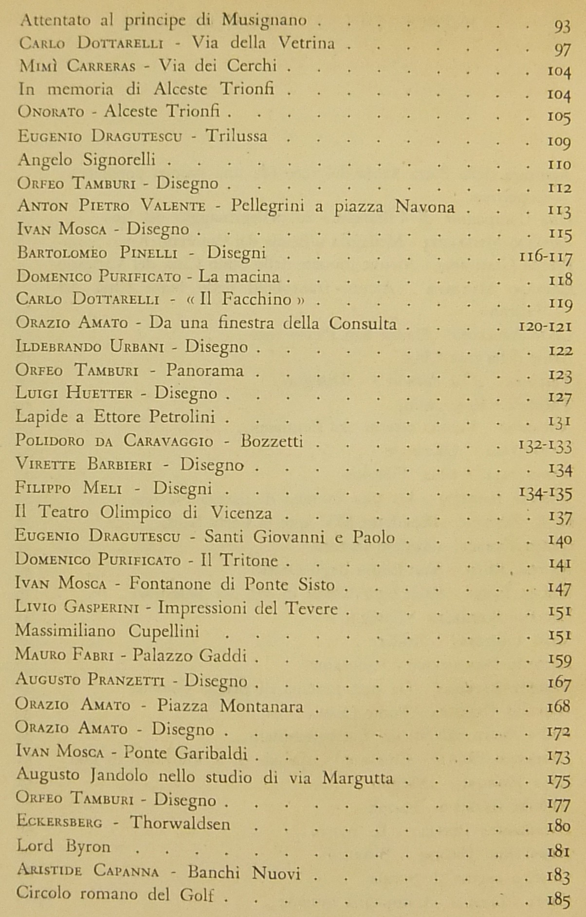 Testi di Leone Gessi, Giovanni Incisa della Rocchetta, Silvio Giuseppe Mercati, Augusto Jandolo, Vittorio Clemente, Luigi Huetter, Giulio Cesare Santini, Antonio Baldini, F. Paolo Giordani, Emilio Re, Mario Lizzani, Attilio Taggi, Pio Pecchiai, Paolo Buzzi, Gustavo Brigante Colonna, Ceccarius, Mario dell'Arco, Ettore Veo, Antonio Munoz, Vittorio Clemente, Nino Buzzi, Antonio Spinola, Emma Amadei, Piero Scarpa, Ermanno Ponti, Augusto Campana et al.