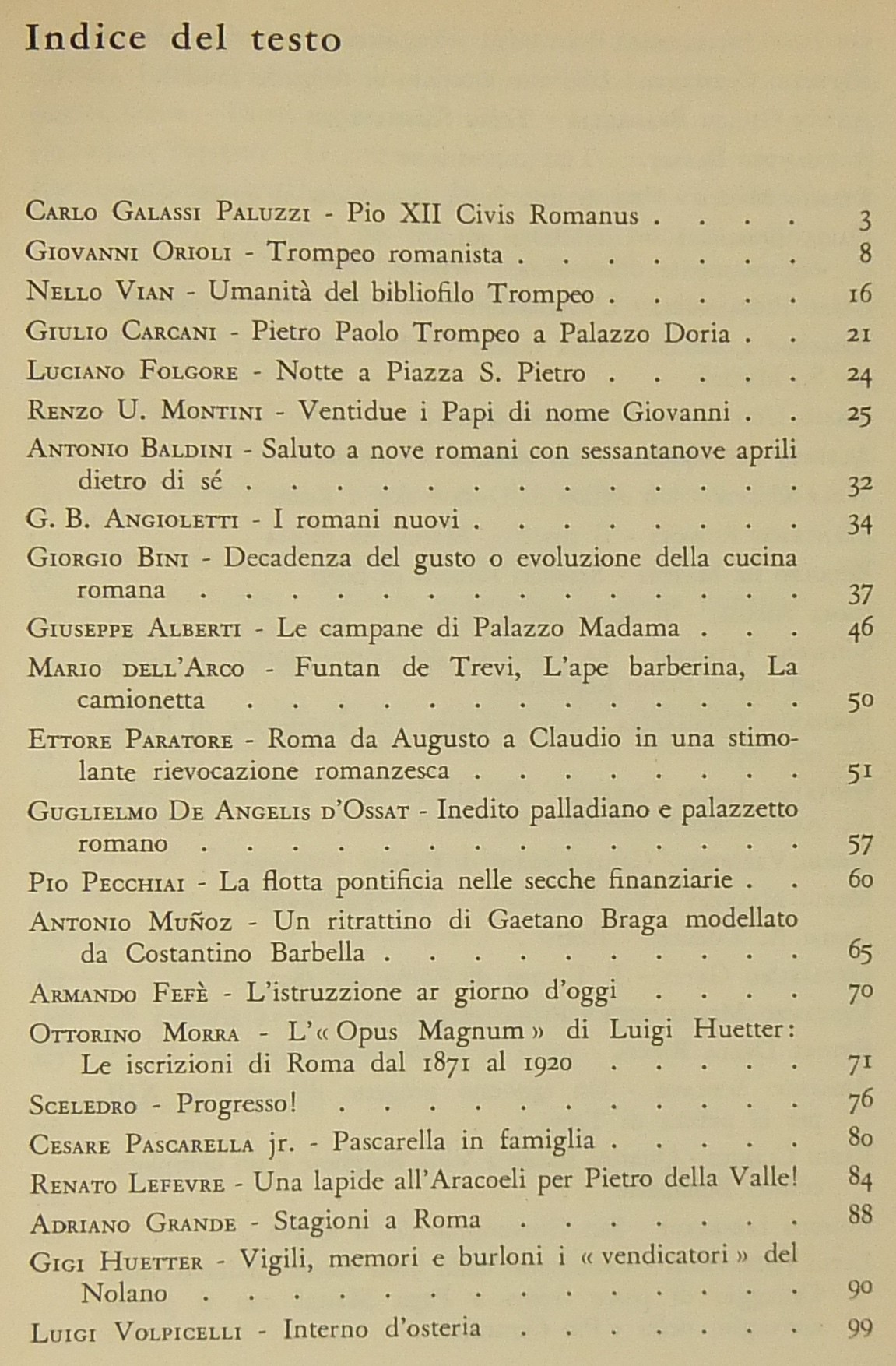 Testi di Luciano Folgore, Antonio Baldini, Mario dell'Arco, Ettore Paratore, Pio Pecchiai, Cesare Pascarella jr., Luigi Volpicelli, Anton Giulio Bragaglia, Alessandro Blasetti, Francesco Ruspoli, Mario Verdone, Leone Gessi, Fernando Stoppani, Ceccarius et al.