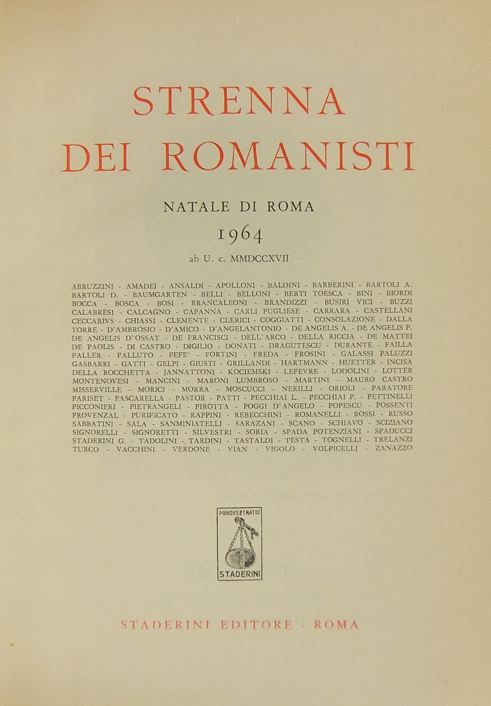Strenna dei romanisti. Natale di Roma. N. 25 - 1964