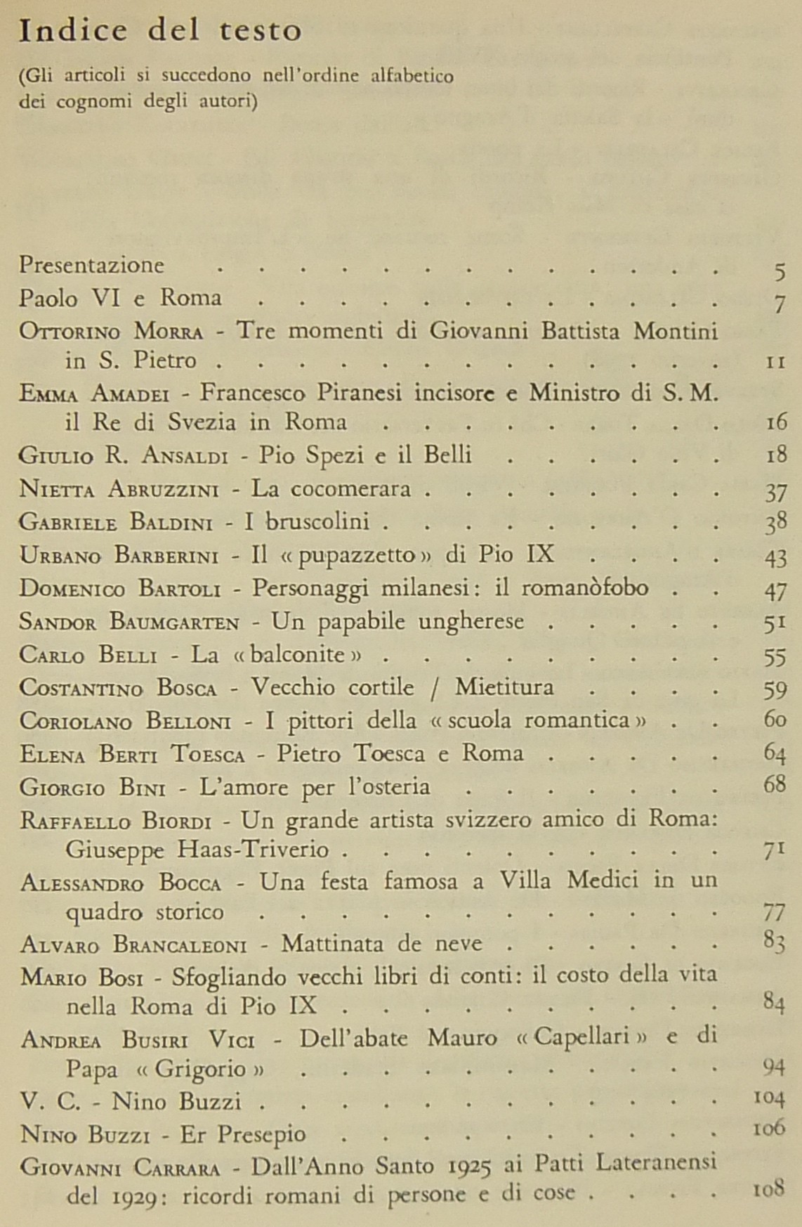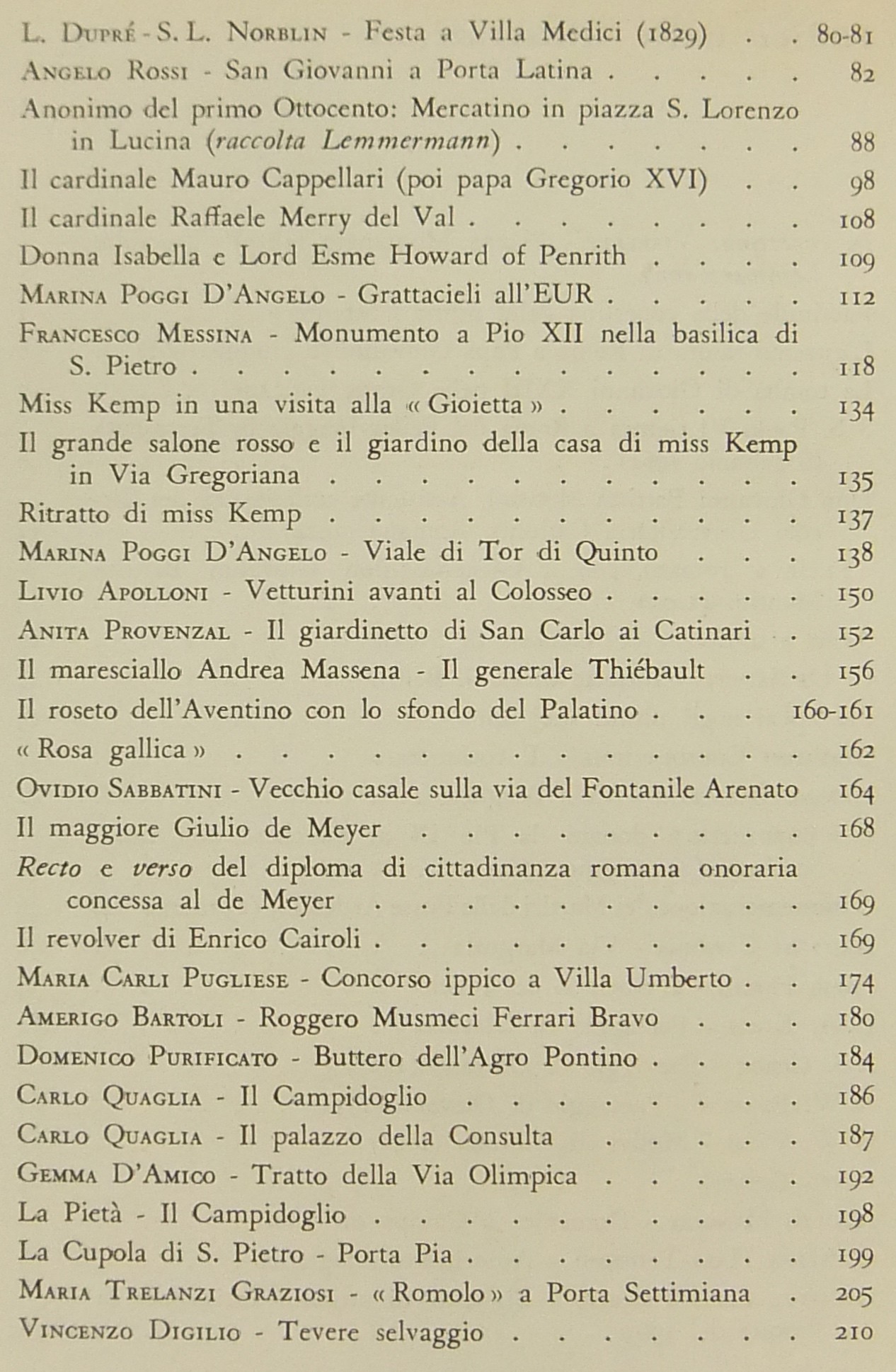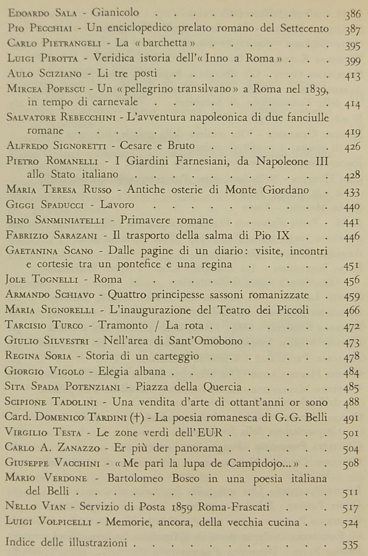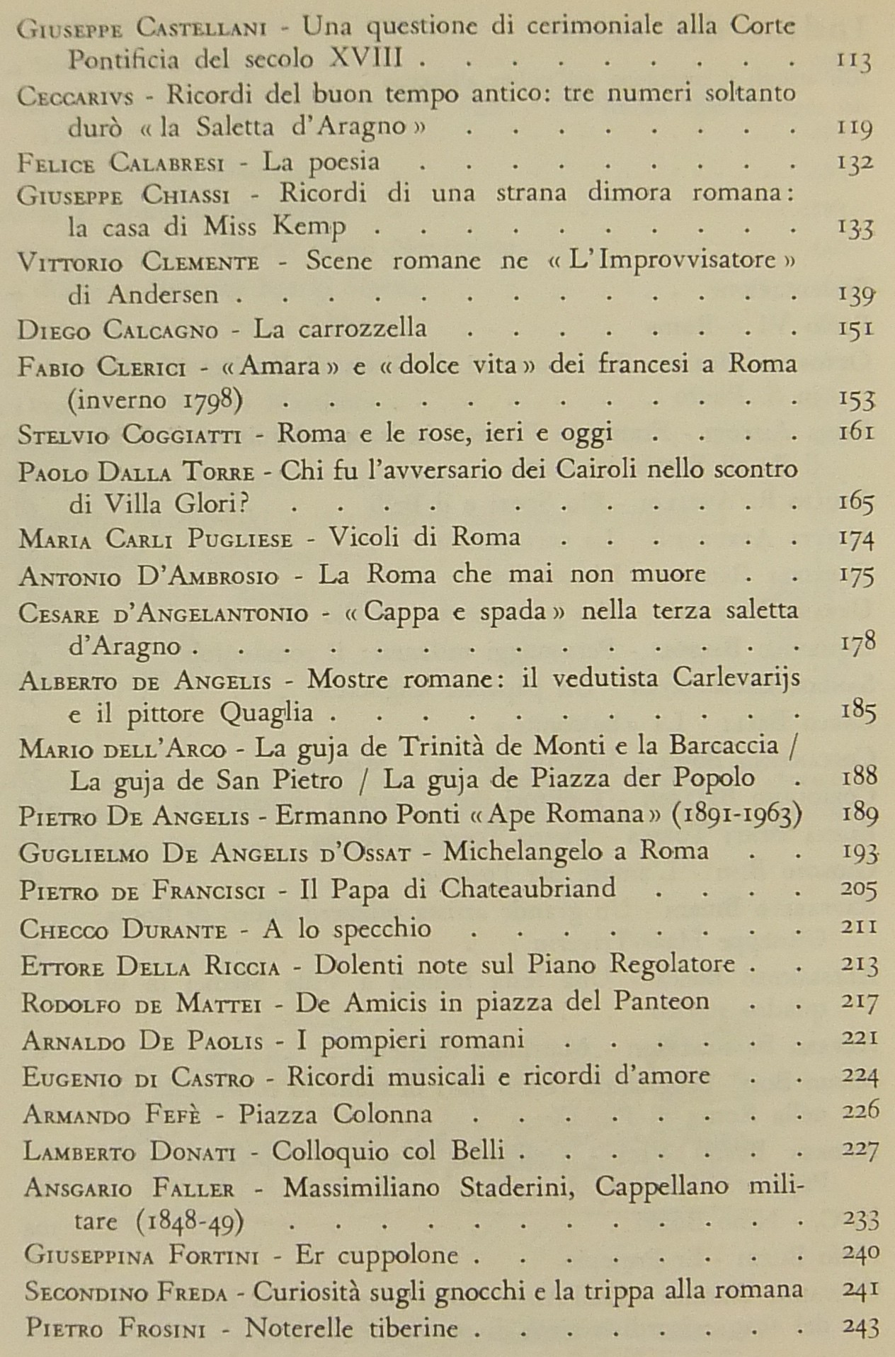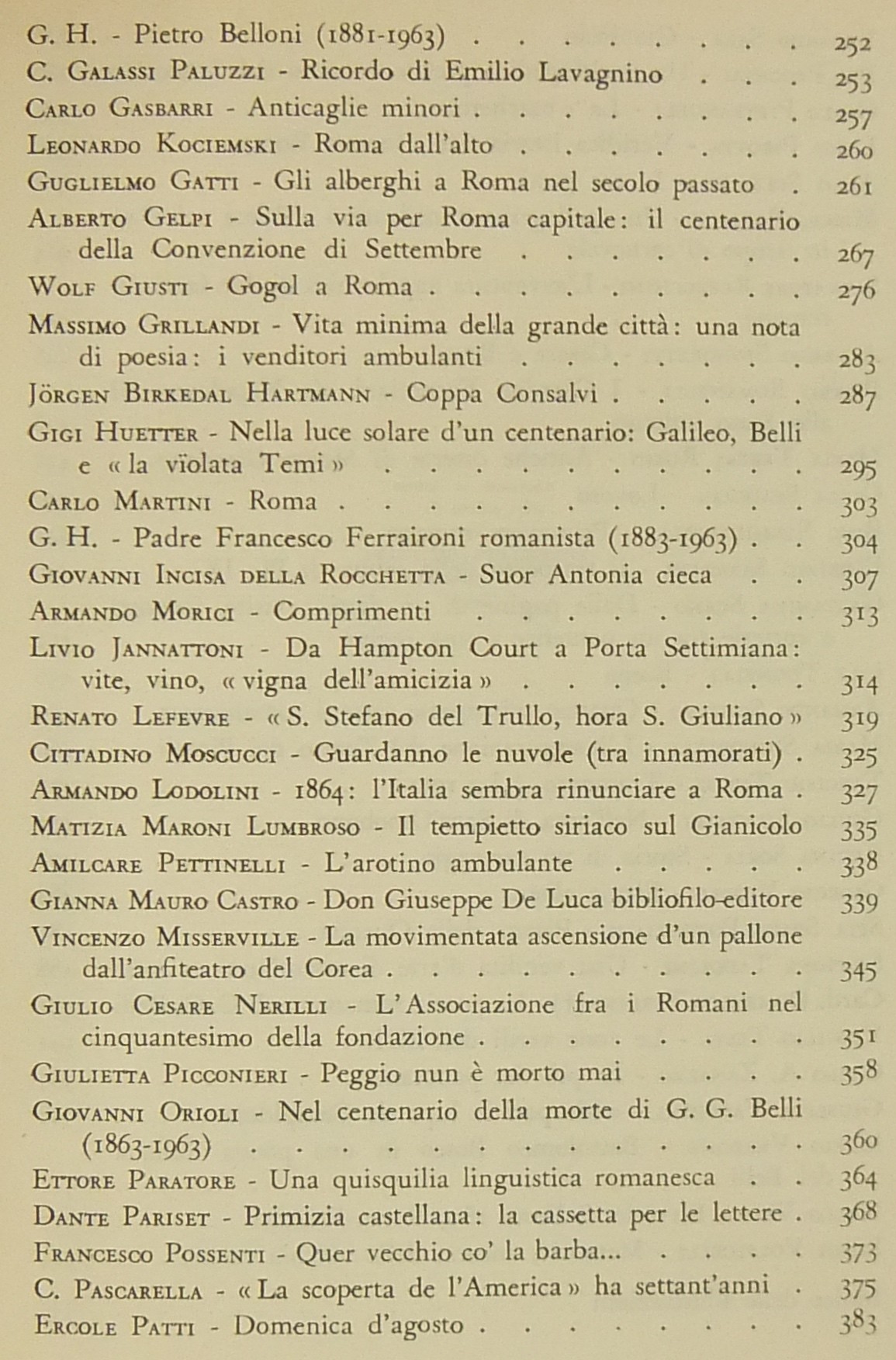 Testi di: Ottorino Morra, Emma Amadei, Giulio R. Ansaldi, Gabriele Baldini, Urbano Barberini, Domenico Bartoli, Sandor Baumgarten, Carlo Belli, Giorgio Bini, Alessandro Bocca, Mario Bosi, Giuseppe Castellani, Ceccarius, Vittorio Clemente, Diego Calcagno, Alberto de Angelis, Mario dell'Arco, Pietro De Francisci, Checco Durante, Lamberto Donati, Ettore Paratore, Cesare Pascarella, Ercole Patti, Pio Pecchiai, Alfredo Signoretti, Bino Sanminiatelli, Virgilio Testa, Carlo A. Zanazzo, Mario Verdone, Nello Vian, Luigi Volpicelli et alii.