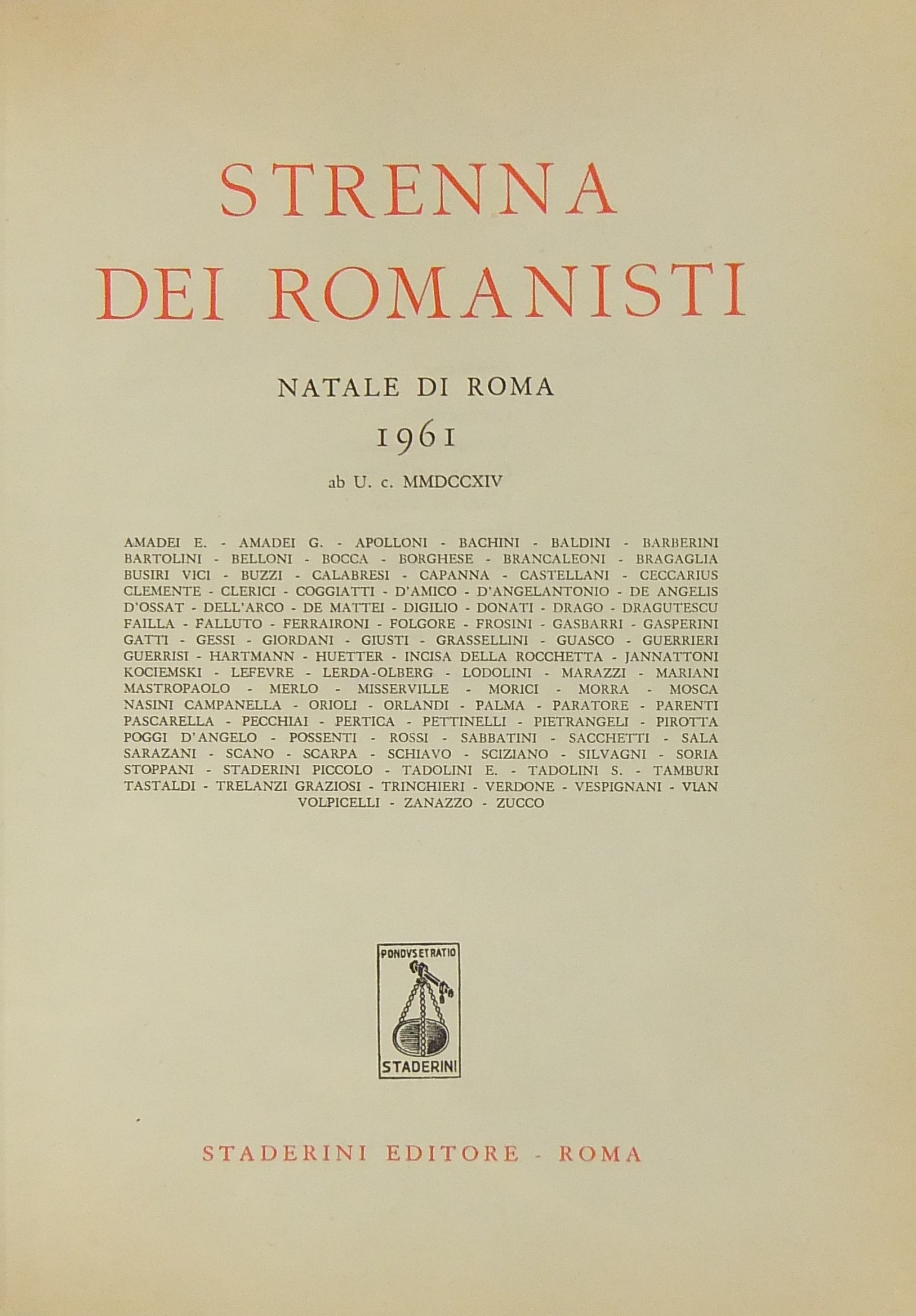 Strenna dei romanisti. Natale di Roma. N. 22 - 1961