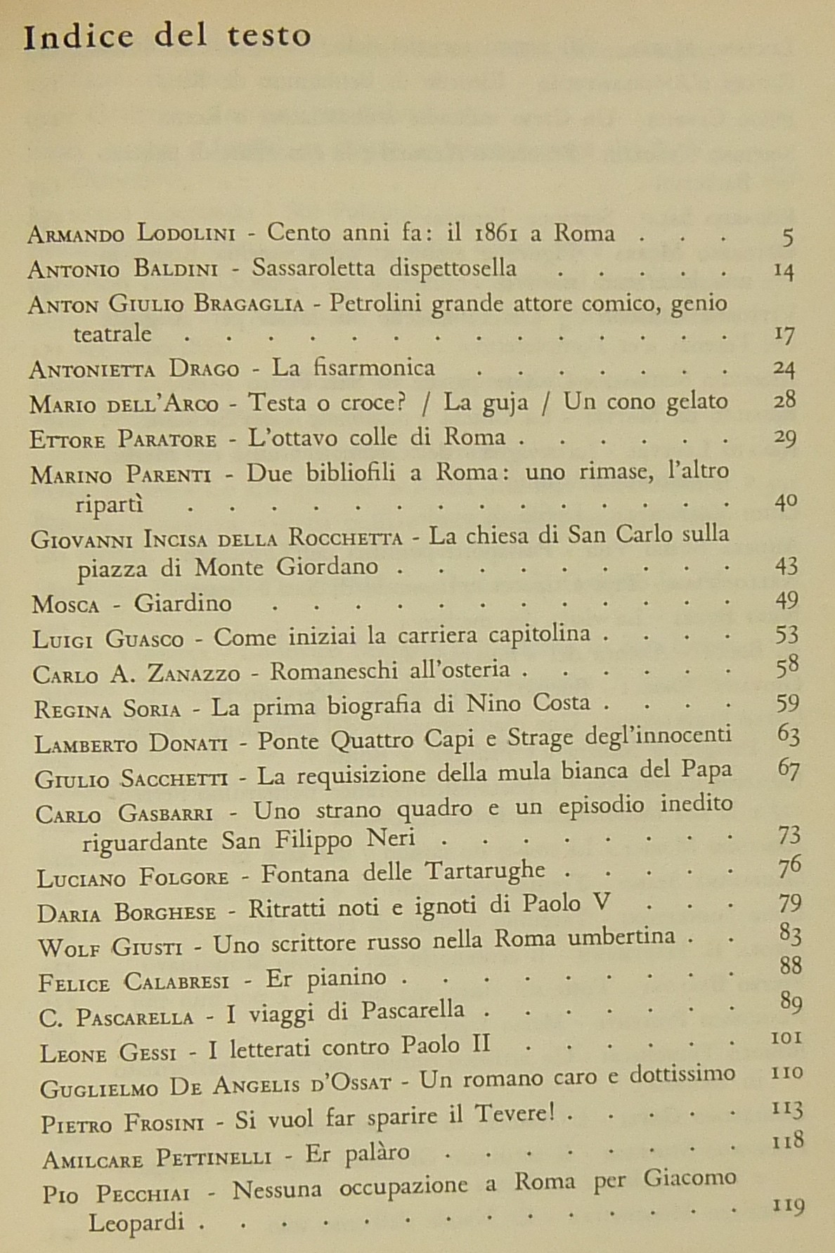 Testi di Antonio Baldini, Anton Giulio Bragaglia, Mario dell'Arco, Ettore Paratore, Marino Parenti, Mosca, Carlo A. Zanazzo, Luciano Folgore, Cesare Pascarella, Leone Gessi, Pio Pecchiai, Luciano Merlo, Romolo Trinchieri, Francesco Ferraironi, Emma Amadei, Piero Scarpa, Mario Verdone, Aroldo Coggiatti, Ceccarius et al.