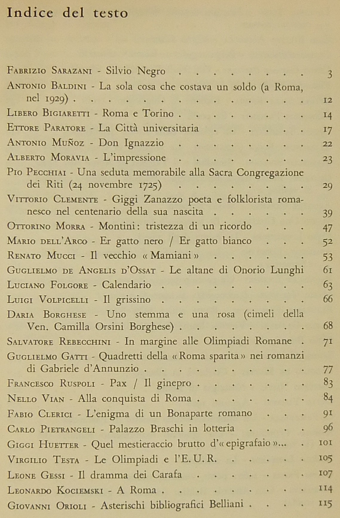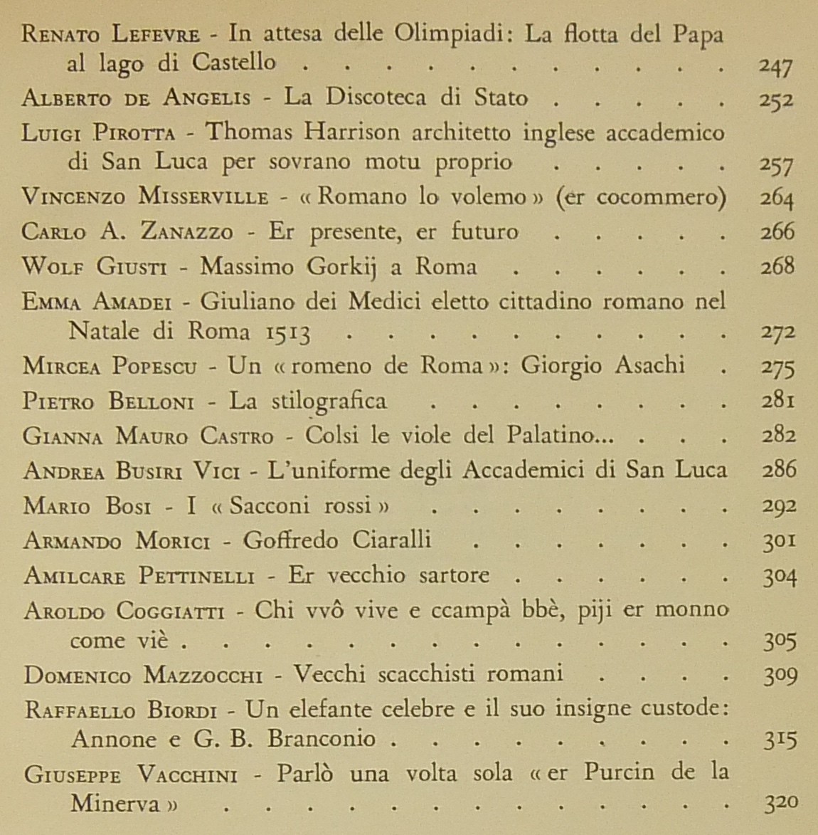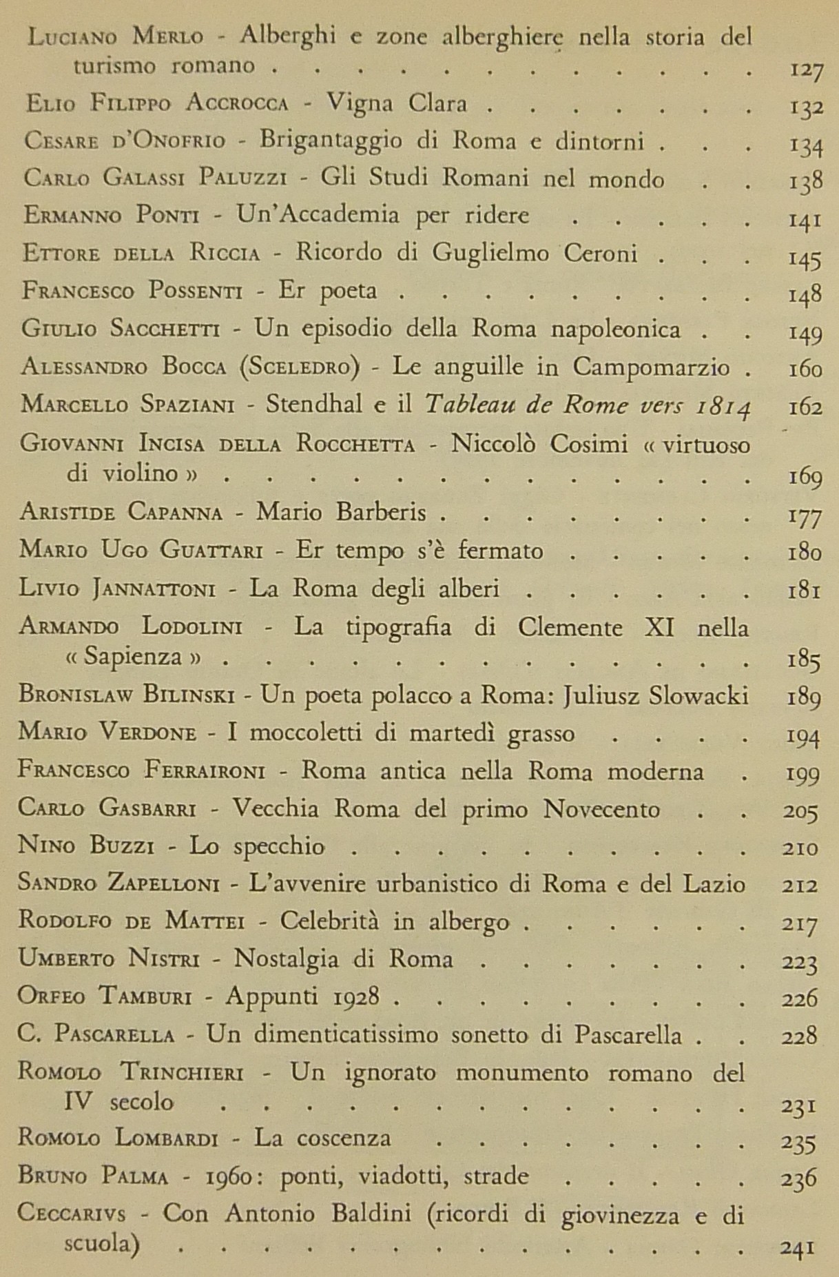 Testi di Antonio Baldini, Libero Bigiaretti, Ettore Paratore, Alberto Moravia, Pio Pecchiai, Mario dell’Arco, Luciano Folgore, Leone Gessi, Ermanno Ponti, Marcello Spaziani, Mario Verdone, Francesco Ferraironi, Cesare Pascarella, Ceccarius, Carlo A. Zanazzo et al.
