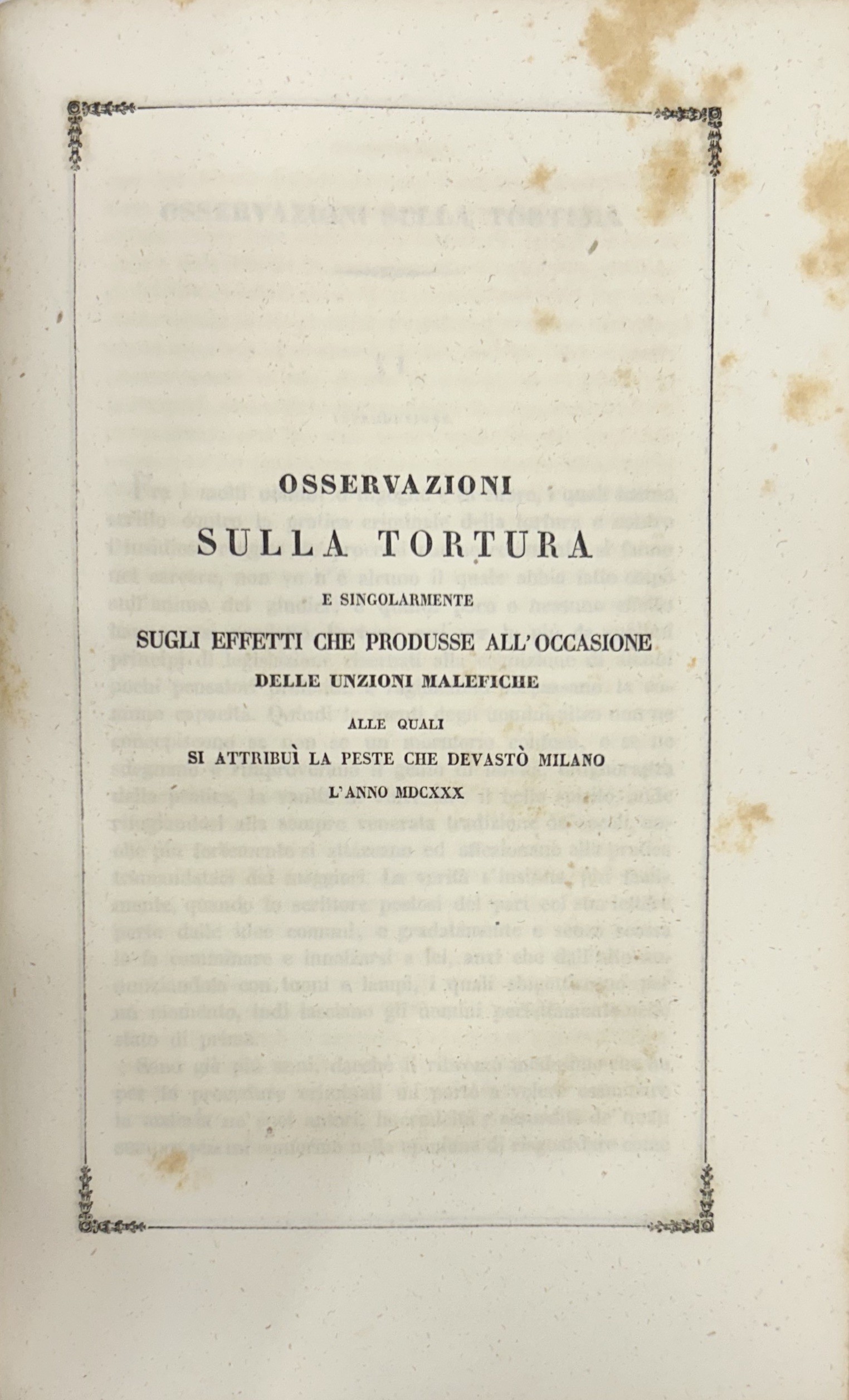 Testo incorniciato da filettatura nera con angoli fitomorfi