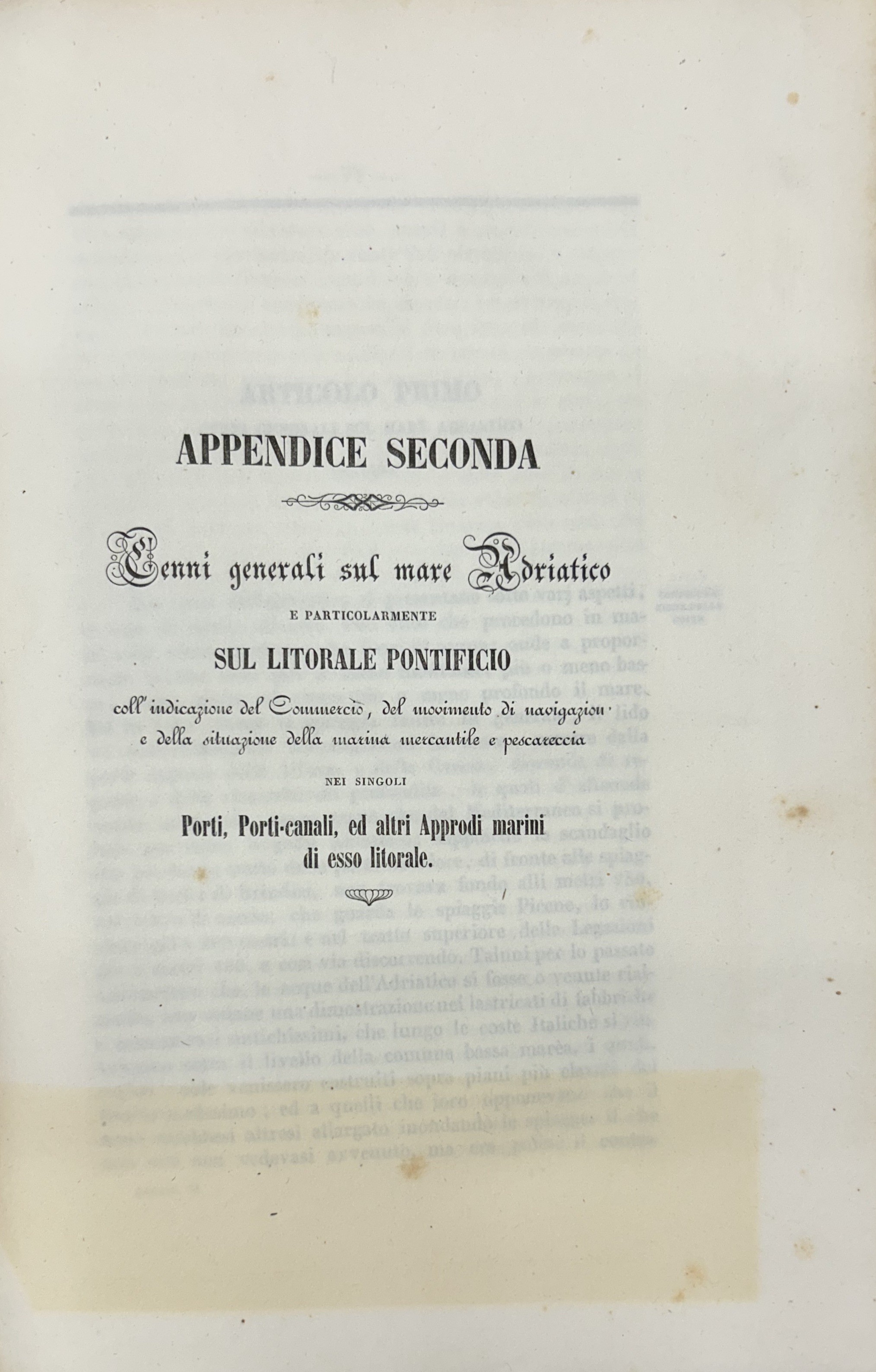 Opera corredata da numerose tavole grandi ripiegate riguardanti l'aspetto geologico, le strade rotabili, il censimento e la popolazione, lo stato generale delle coltivazioni, il mare Adriatico, i porti, i canali e gli altri approdi, i principali generi di mercanzia esportati, il movimento della navigazione e situazione della Marina