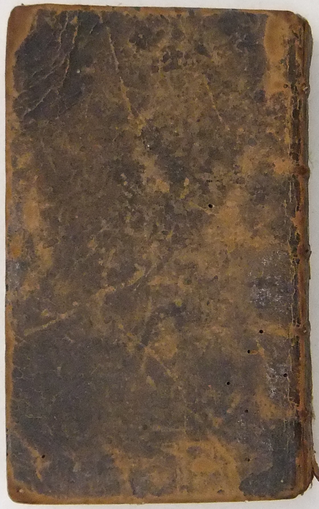 Tagli spruzzati, abrasioni, sbucciature e alcuni fori di tarlo alla copertina, un piatto staccato, antiche annotazioni di appartenenza al risguardo anteriore e sul frontespizio, leggera gora d\'acqua marginale alle prime carte, vari percorsi e fori di tarlo estinto