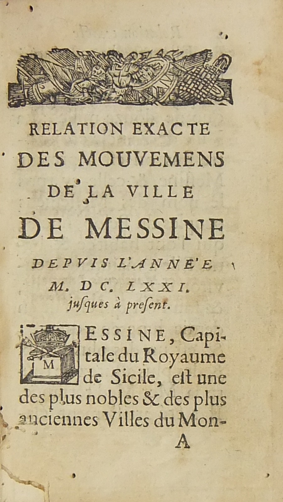 Relation des mouvemens de la ville de Messine depuis l'annee 1671 jusques a present