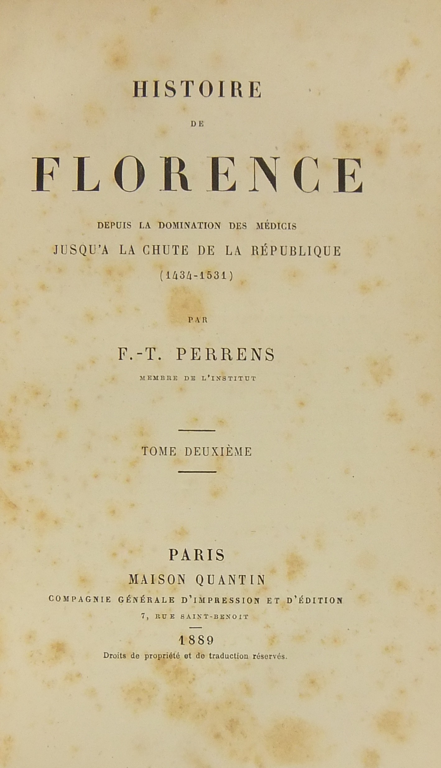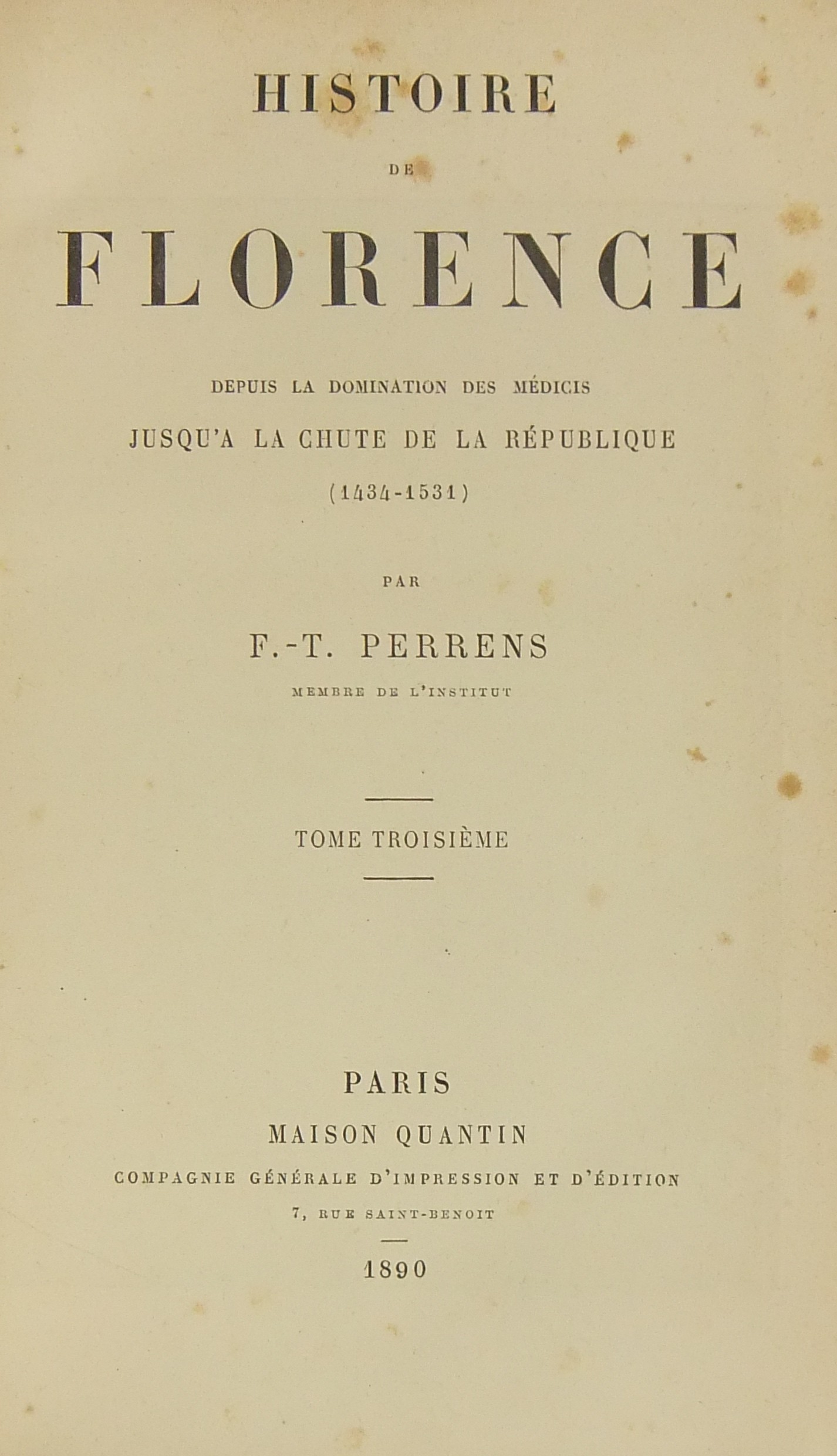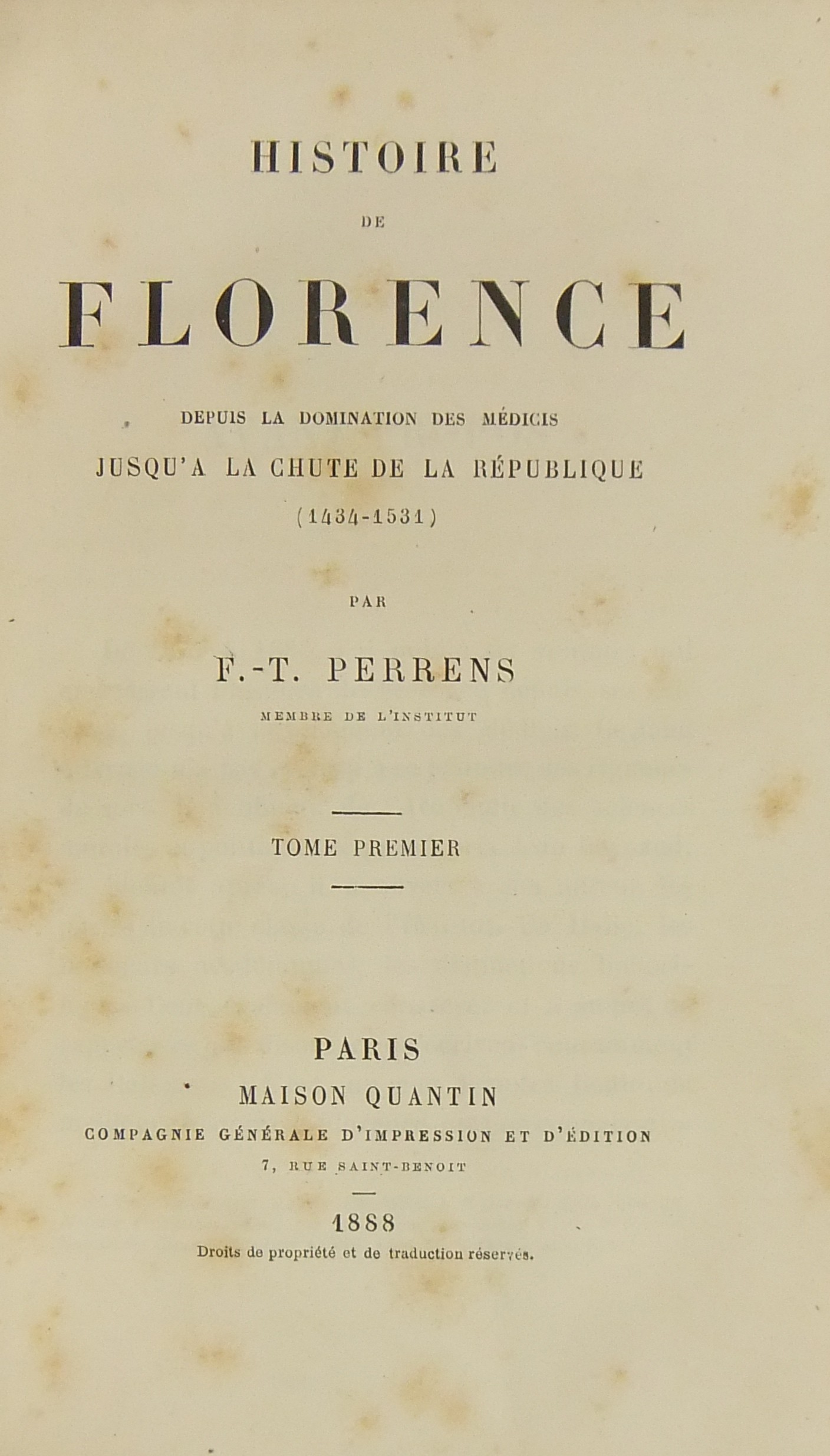 Histoire de Florence depuis la domination des Medicis jusqu'a la chute de la Republique (1434-1531)
