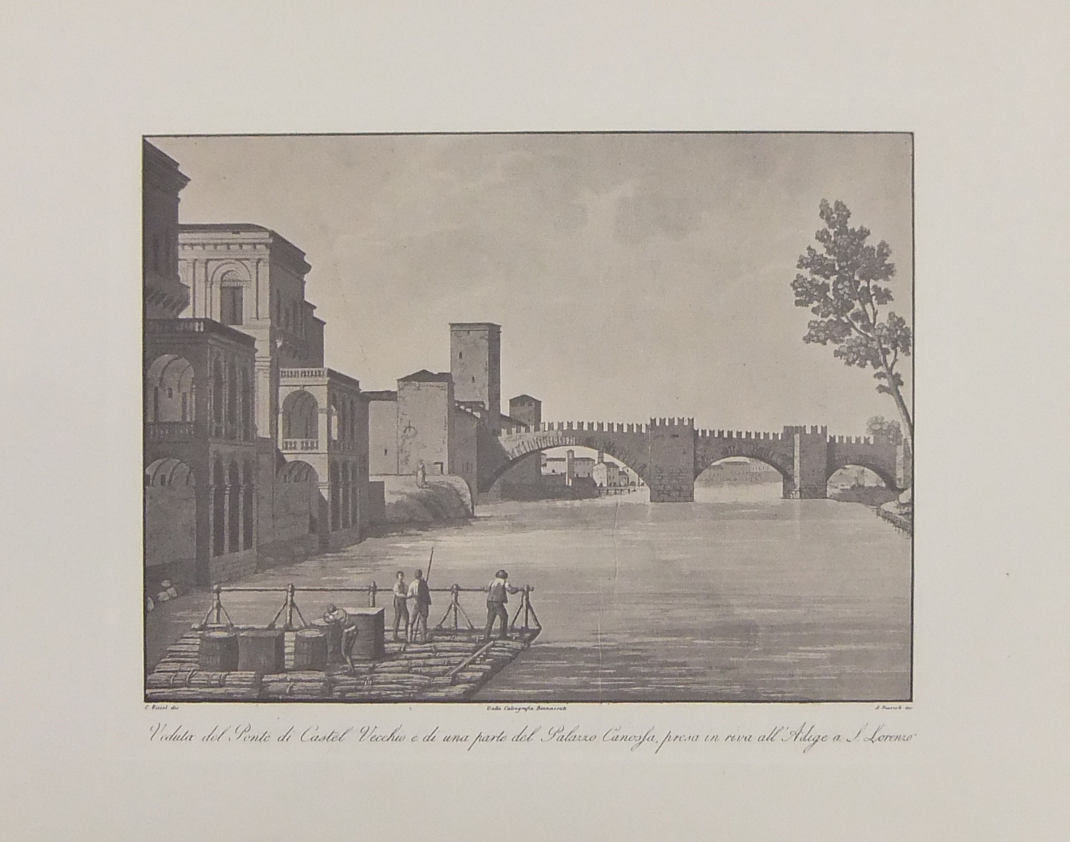 Pagine: cartellina contenente 2 fogli di testo e 5 stampe Castel San Pietro Ponte Castelvecchio Ponte della Pietra Ponte delle Navi Ponte Nuovo