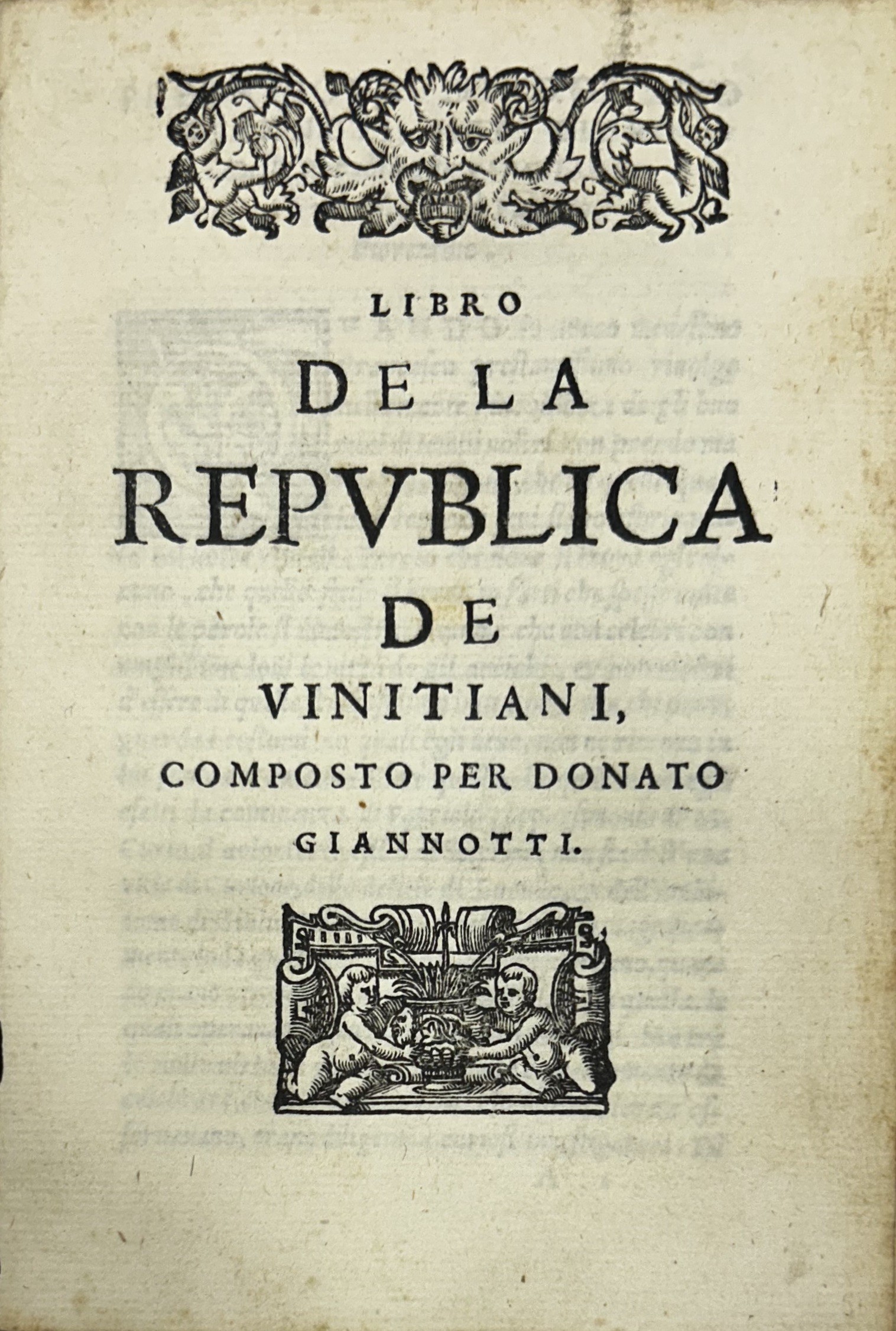 La Republica e i Magistrati di Vinegia. Nuovamente corretta e stampata. UNITO A: Donato Giannotti: Libro de la Republica de vinitiani, pp. 103 c.c.