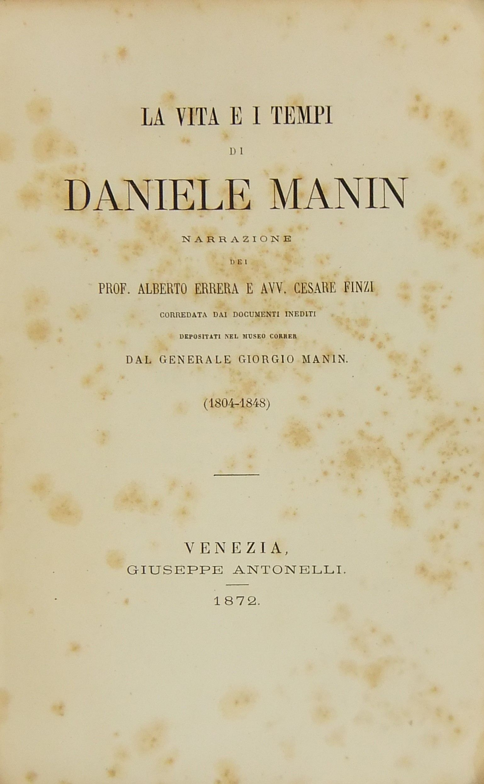 La vita e i tempi di Daniele Manin narrazione... Corredata dai documenti inediti depositati nel museo Correr dal generale Giorgio Manin. (1804-1848)