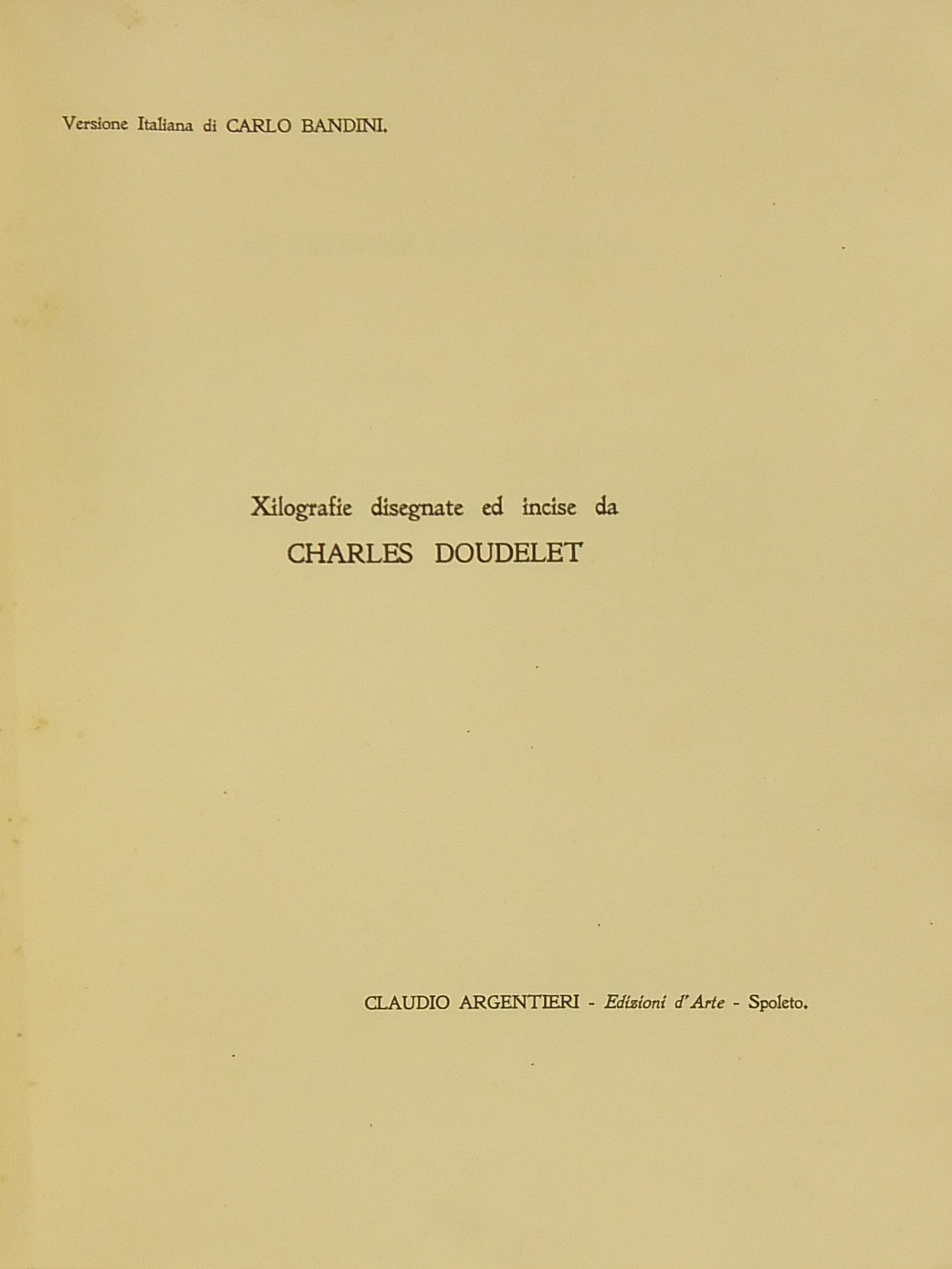 Copertina e numerose xilografie di Charles Doudelet (Lille 1861 - Gand 1938). Edizione di 1000 esemplari numerati a mano (nostro n. 79). Con 53 xilografie (di cui 10 tavole a piena pagina) e 22 capilettera