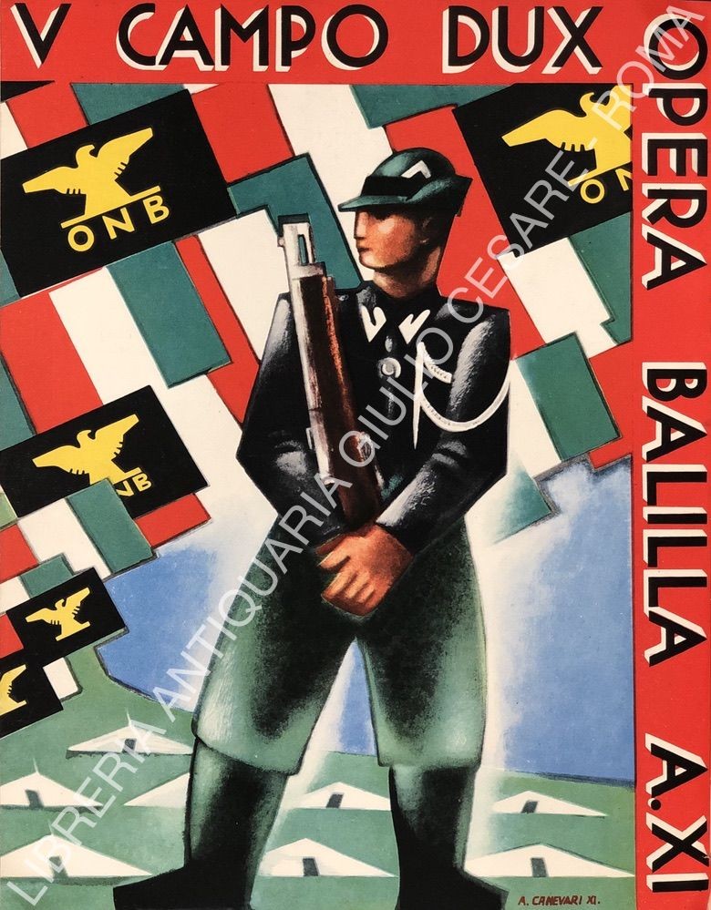 Completo di tavole a colori raffiguranti manifesti di propaganda fascista illustrate da Canevari