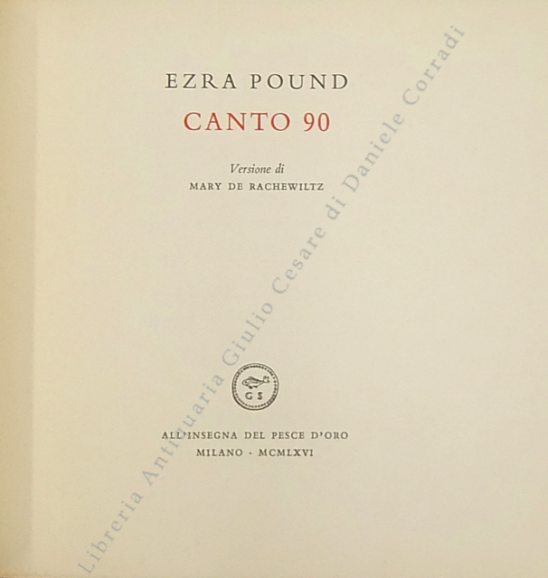 Esemplare N. 644 di mille copie numerate a cura di Vanni Scheiwiller. Copertina di Giò Pomodoro. Testo inglese a fronte. 81° compleanno di Ezra Pound
