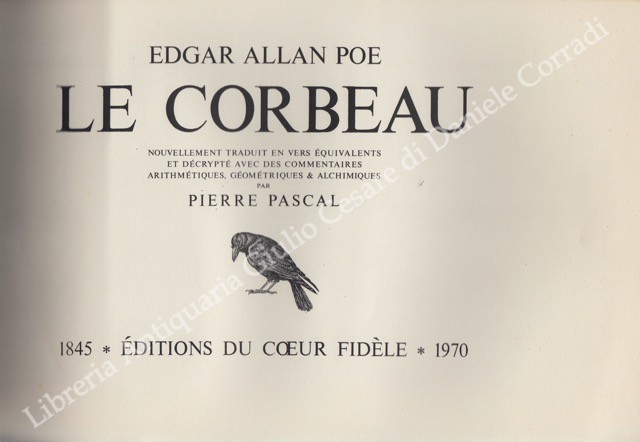 Le Corbeau. Nouvellement traduit en vers equivalents et décrypté avec des commentaires arithmétiques, géométriques & alchimiques par Pierre Pascal