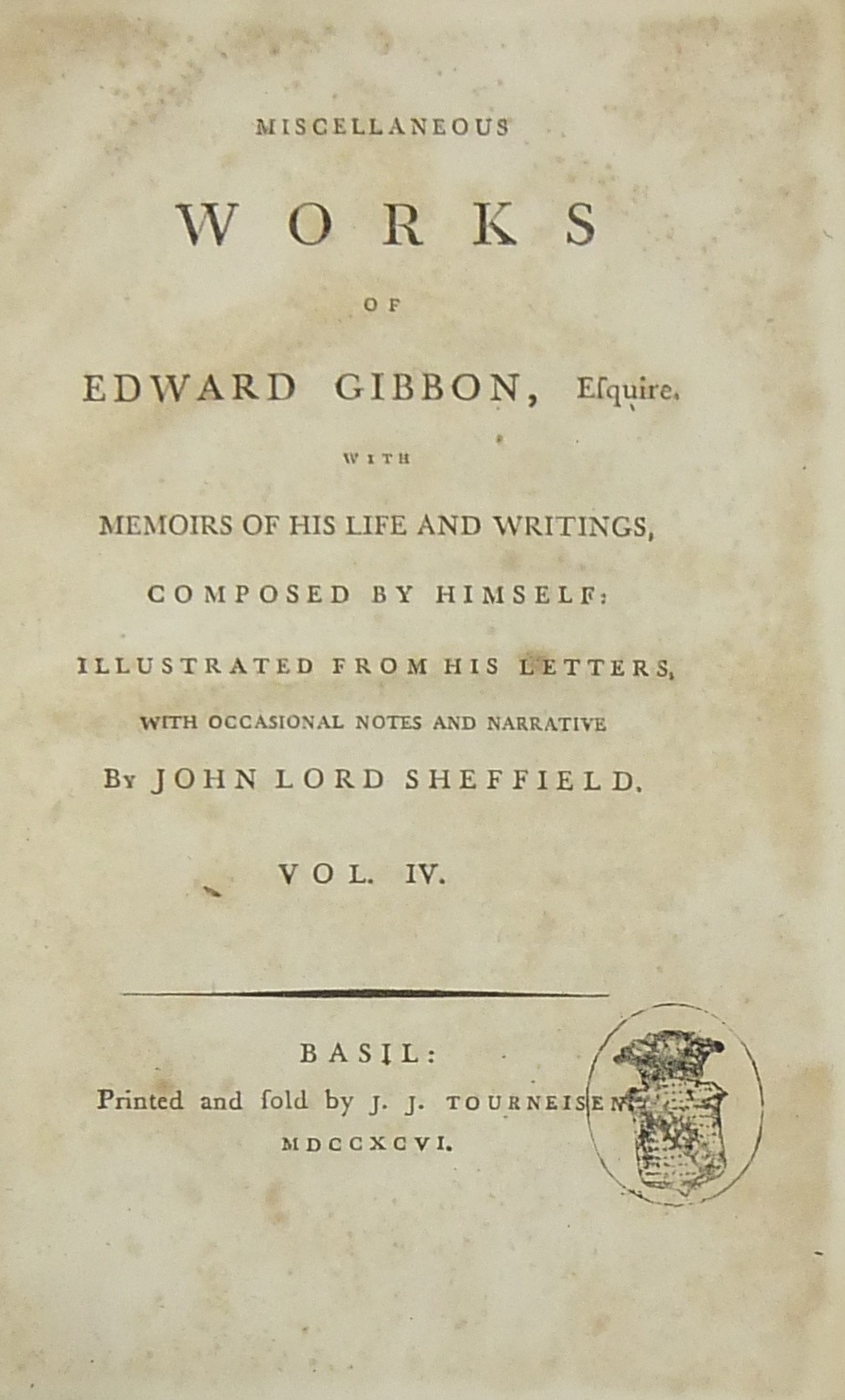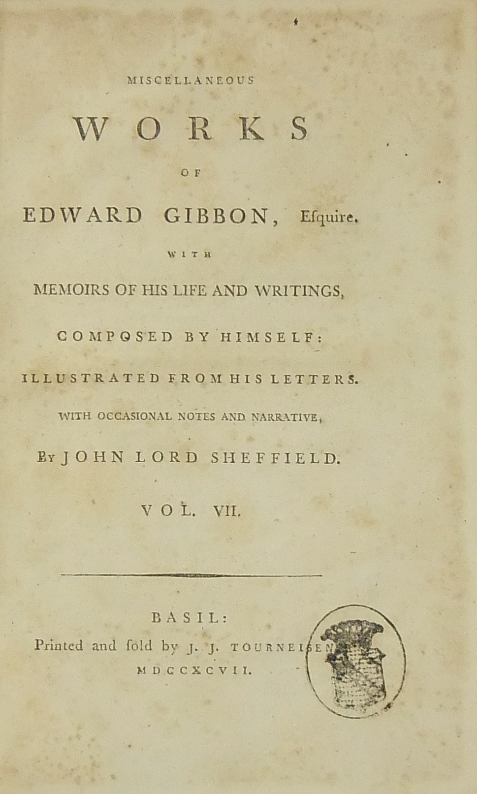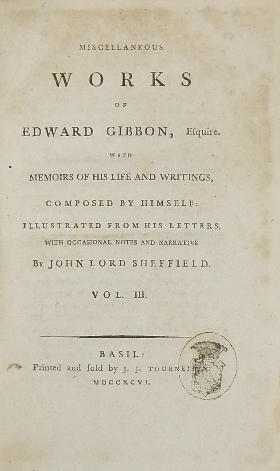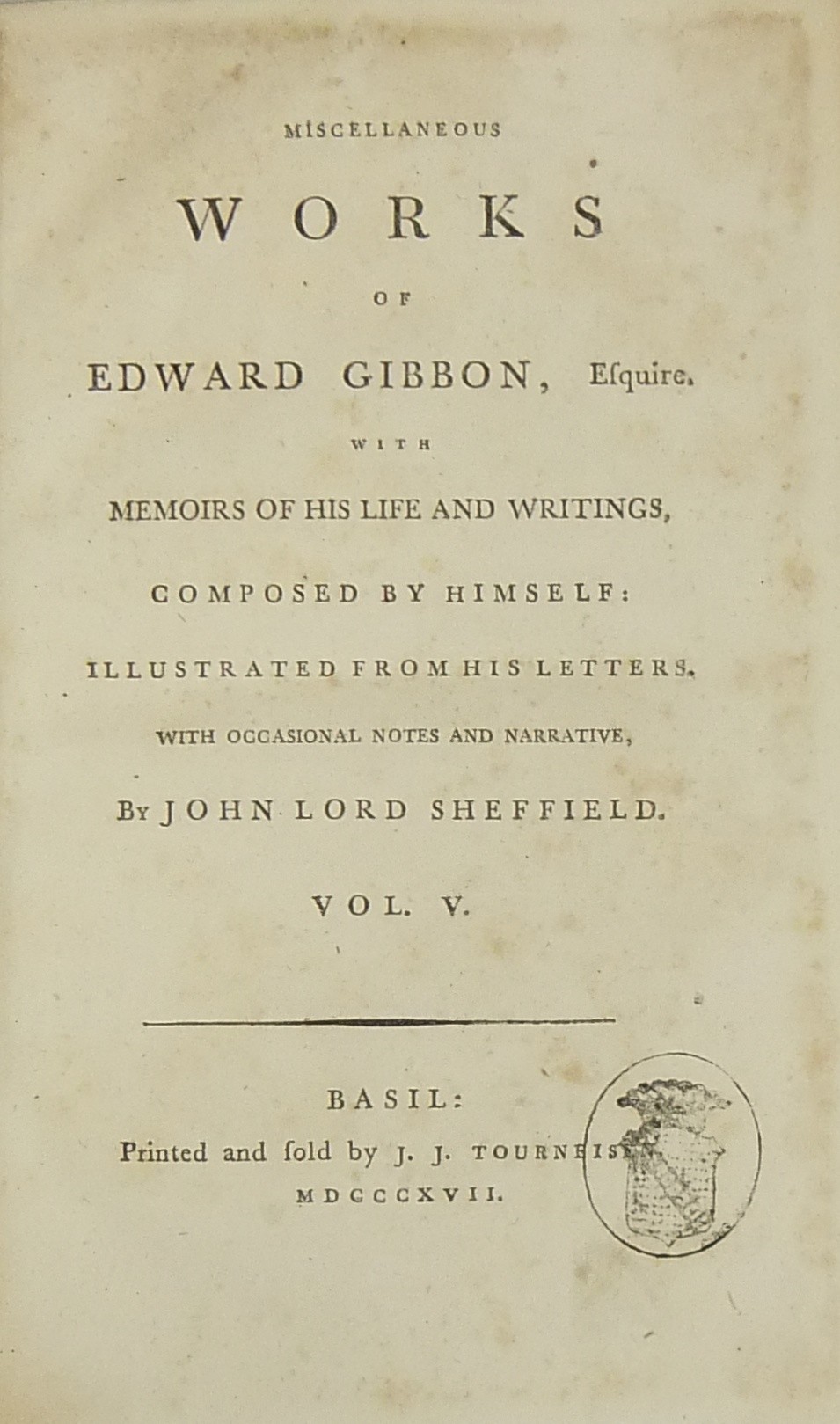 Miscellaneous works of Edward Gibbon esquire with memoirs of his Life and writings composed by Himself illustrated from his letters with occasional notes and narrative by John Lord Sheffield