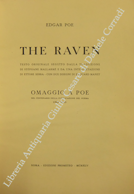 The Raven. Testo originale seguito dalla traduzione di Stephane Mallarme e da una interpretazione di Ettore Serra - con due disegni di Edouard Manet. Omaggio a Poe nel centenario della pubblicazione del poema 1845-1945