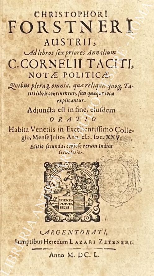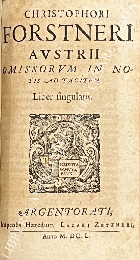 Christophori Forstneri Austrii, Ad Libros sex priores Annalium C. Cornelii Taciti, Notae Politicae. UNITO A: Forstneri Austrii - Omissorum in notis ad Tacitum. Liber singularis