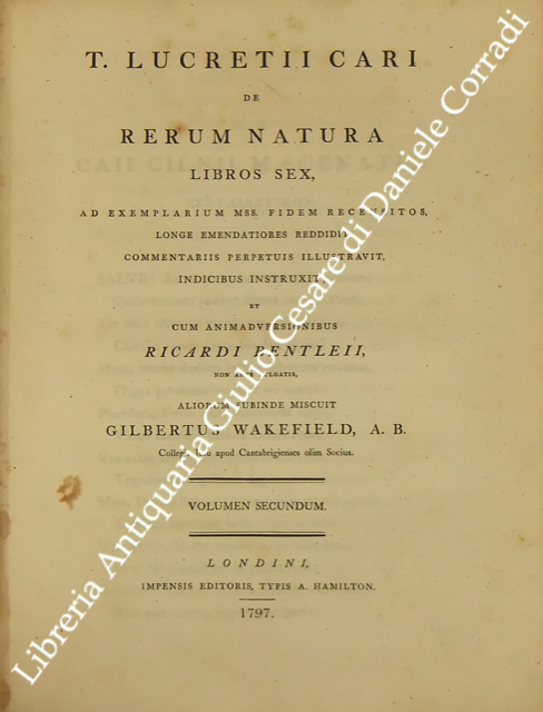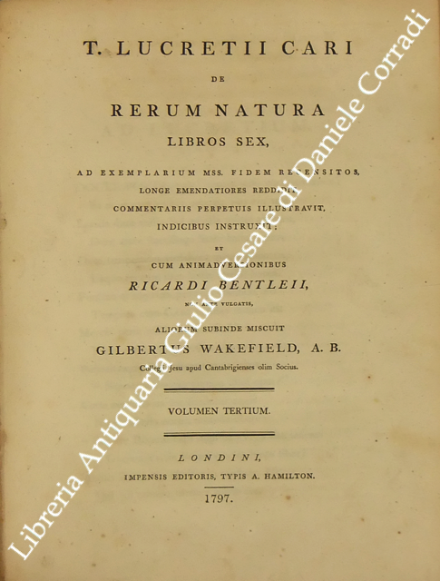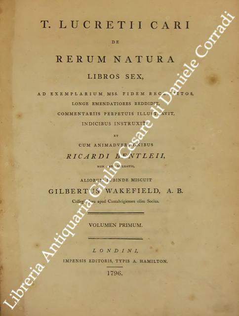 De rerum natura libros sex.. cum animadversionibus Ricardi Bentleii.. miscuit Gilbertus Wakefield..