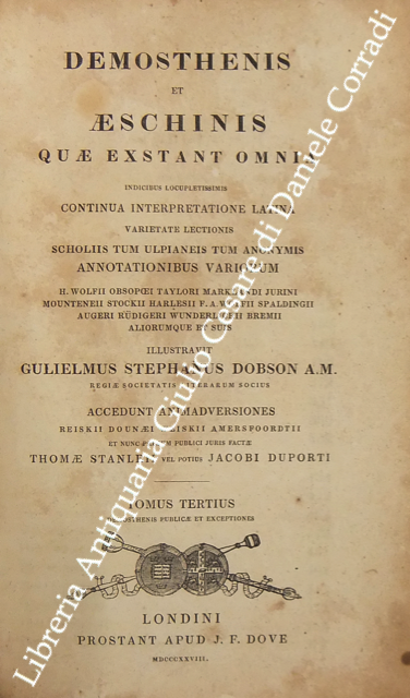 Demosthenis et Aeschinis quae exstant omnia... Illustravit Gulielmus Stephanus Dobson A.M.