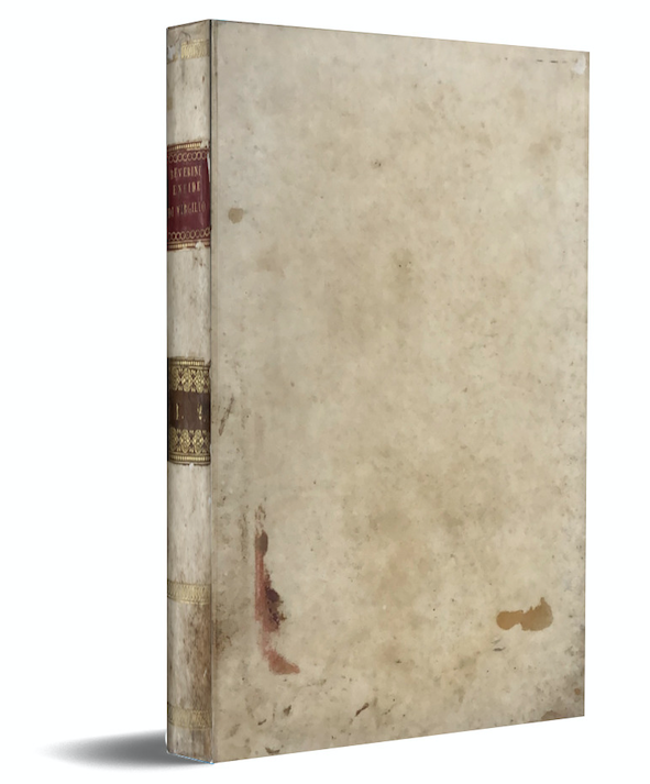 Rilegatura: pregevole p.perg. coeva con doppio tassello ai dorsi