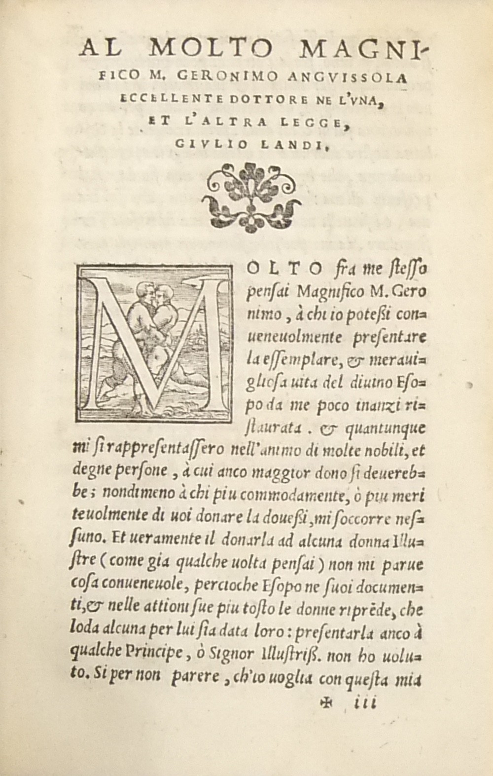 La vita di Esopo tradotta, et adornata dal signor Conte Giulio Landi