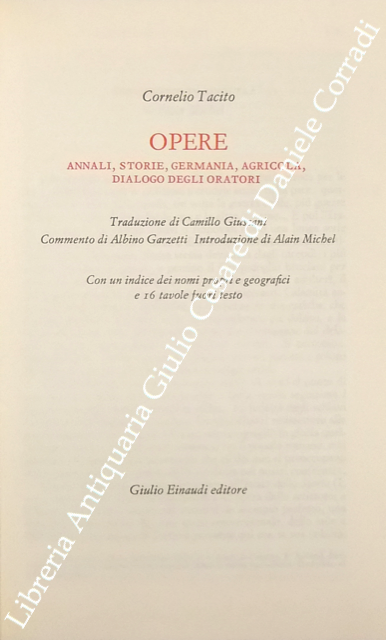Opere. Annali, Storie, Germania, Agricola, Dialogo degli Oratori. Traduzione di Camillo Giussani. Commento di Albino Garzetti. Introduzione di Alain Michel. Con un indice dei nomi propri e geografici e 16 tavole fuori testo