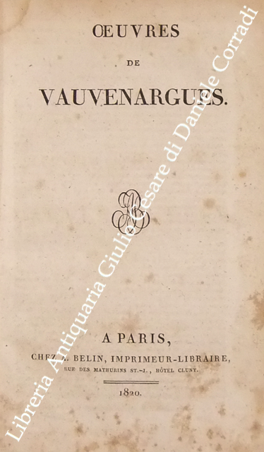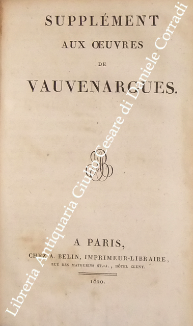 Oeuvres. UNITO A: Supplement aux oeuvres completes de Vauvenargues contenant un grand nombre de dialogues, de caracteres, de pensees et autres ecrits inedits. Publie sur les Manuscrits autographes de l'Auteur