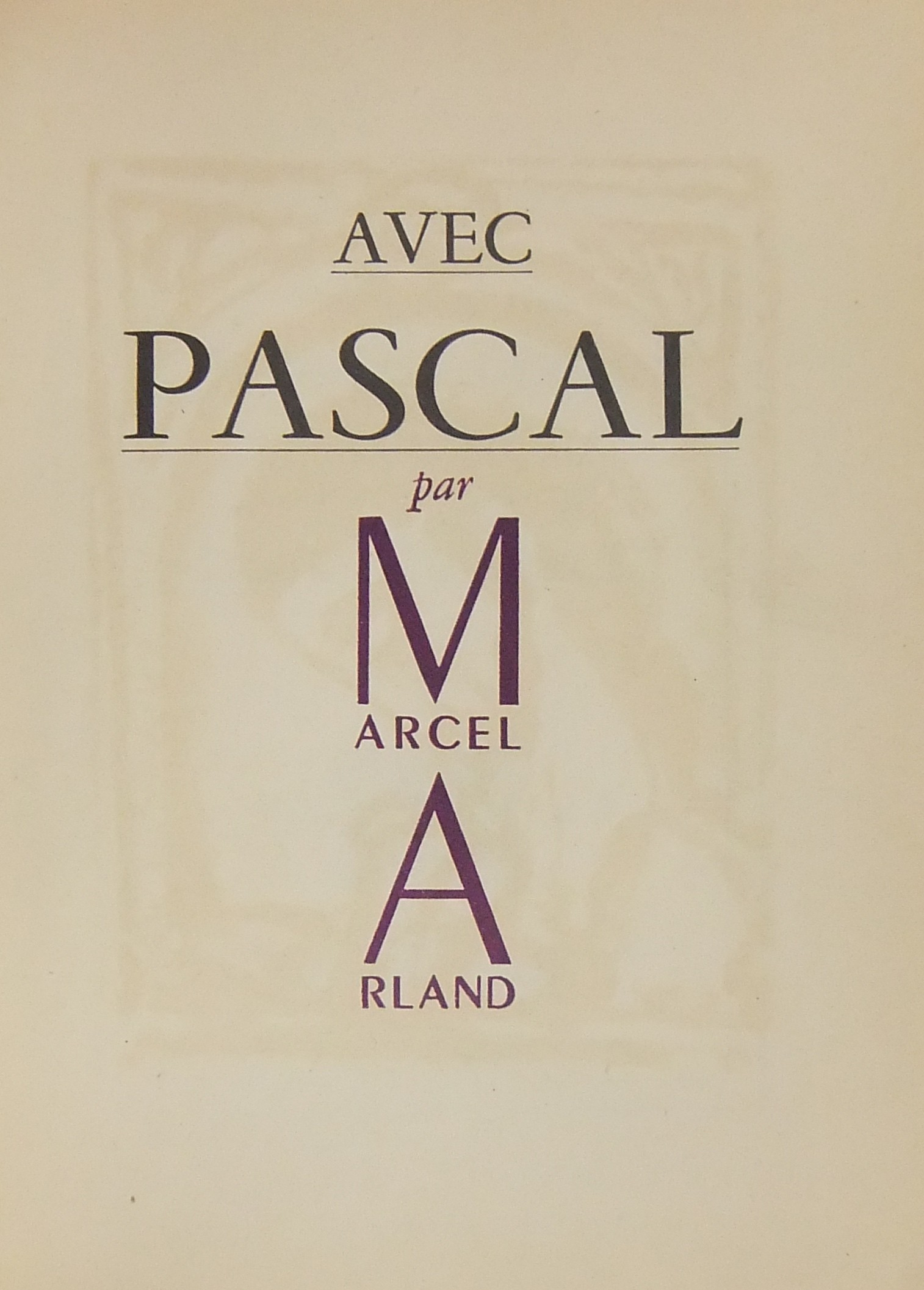 Avec Pascal. Preface de Raymond Guerin. Frontispice et hors-texte de Georges Rouault