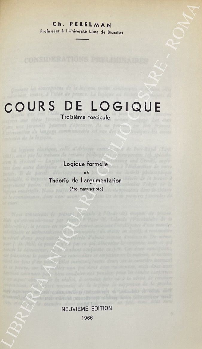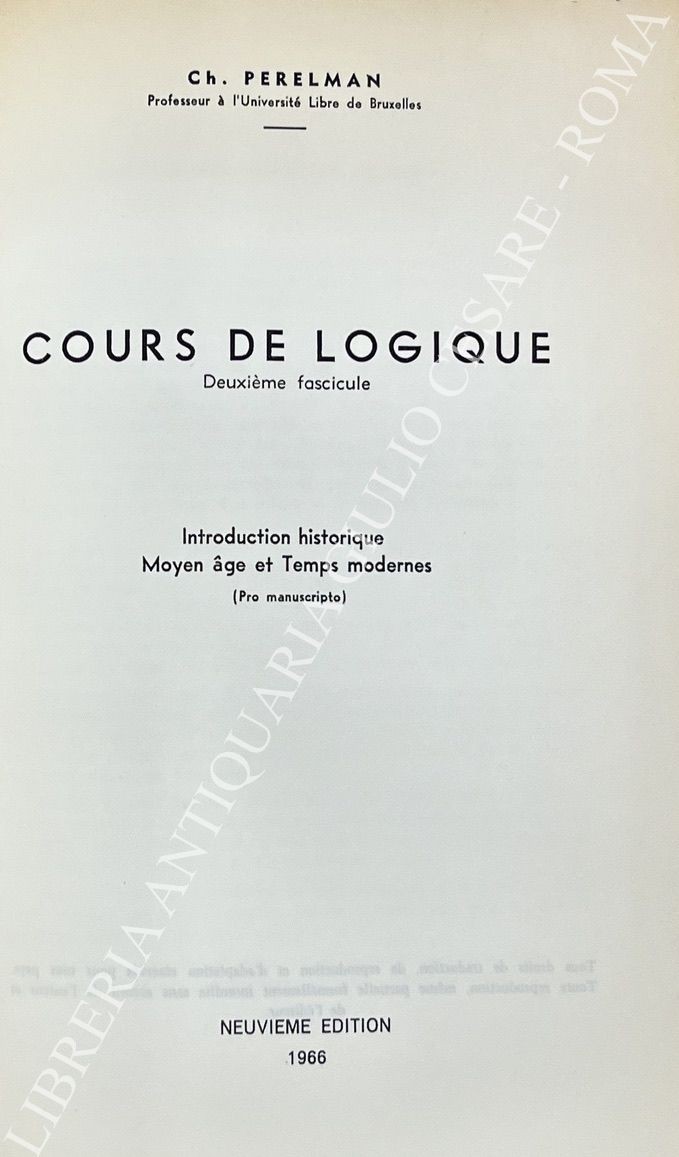 Cours de logique. Vol. I - Introduction historique. Antiquite (Pro manuscripto). Vol. II - Introduction historique Moyen age et Temps modernes (Pro manuscripto). Vol. III - Logique formelle et Theorie de l'argumentation (Pro manuscripto)