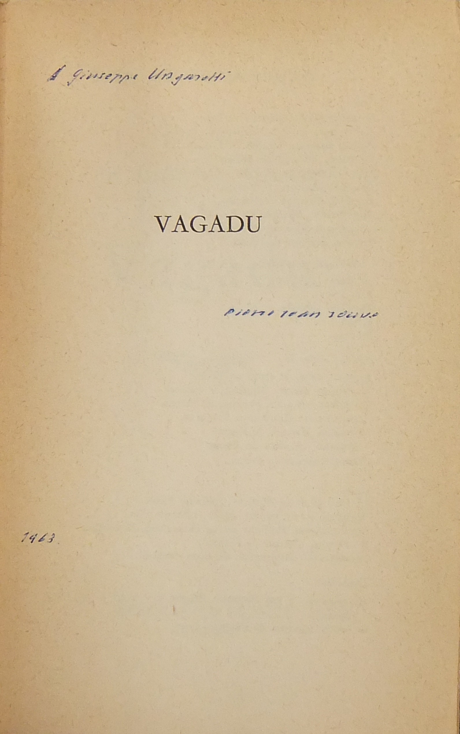Nostro esemplare non numerato. Dedica dell\'Autore al Maestro Giuseppe Ungaretti. Intonso