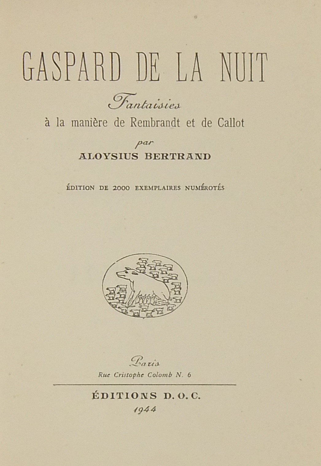 Gaspard de la nuit. Fantasies a la maniere de Rembrandt et de Callot. Edition de 2000 exemplaires numerotes