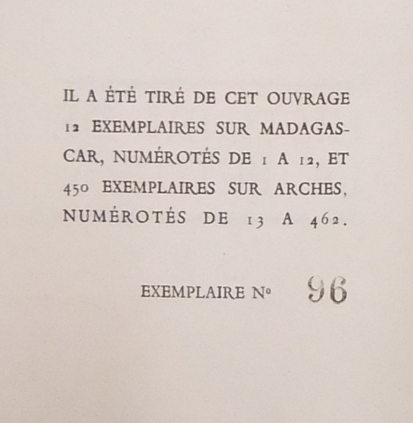 Tiratura limitata a 462 esemplari. Nostro n. 96