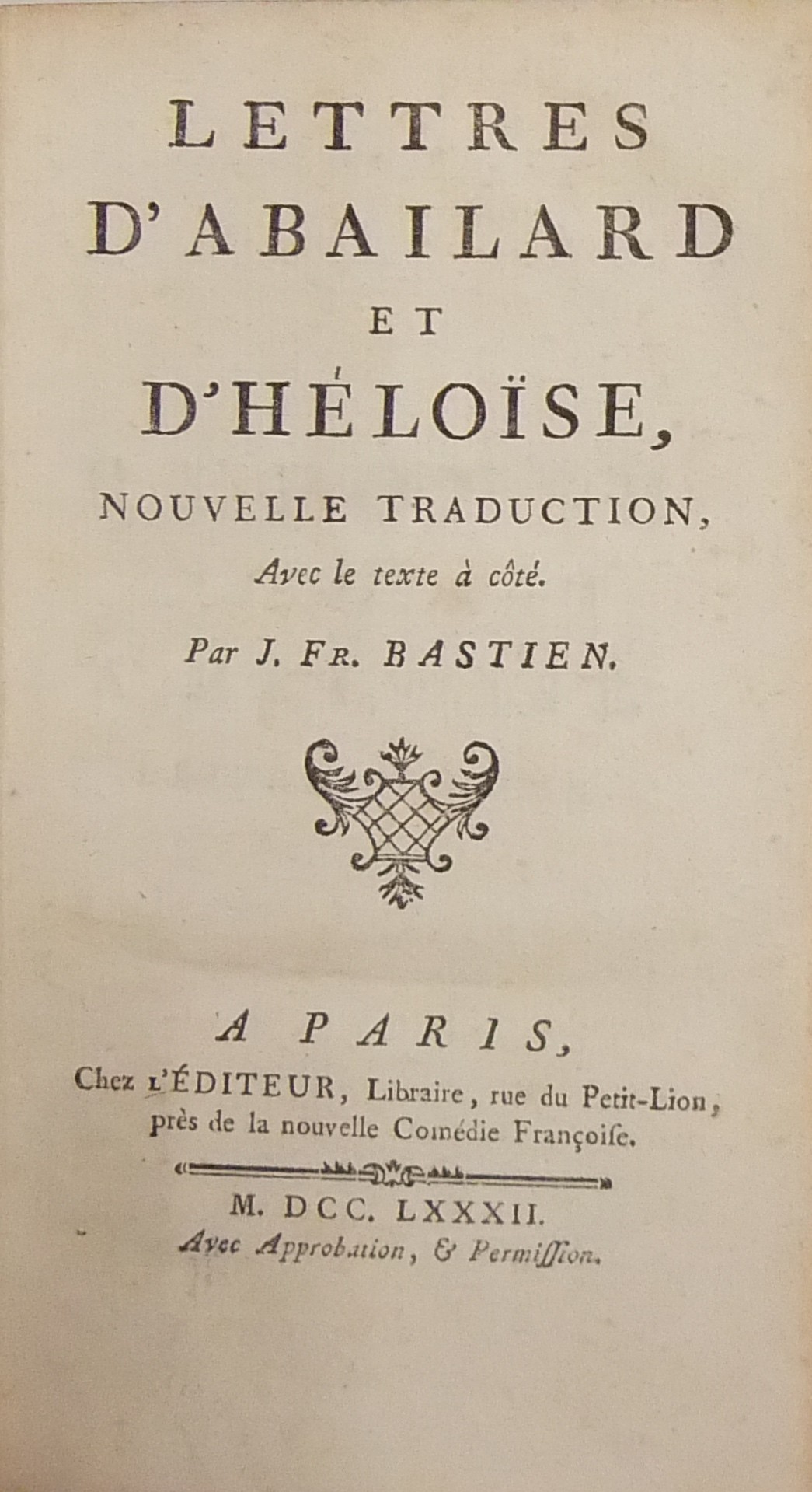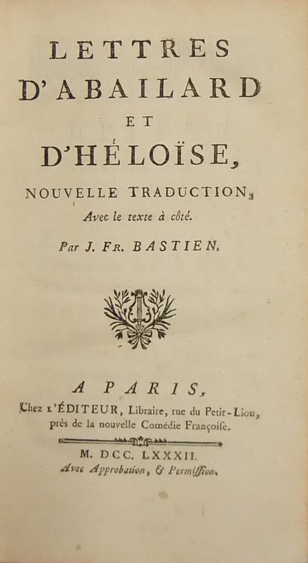 Lettres d'Abailard et d'Heloise. Nouvelle traduction, avec le texte a cote. Par J. Fr. Bastien