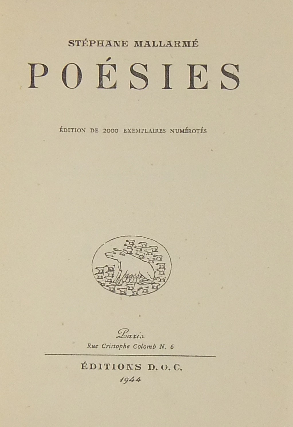 Poesies. Edition de 2000 exemplaires numerotes