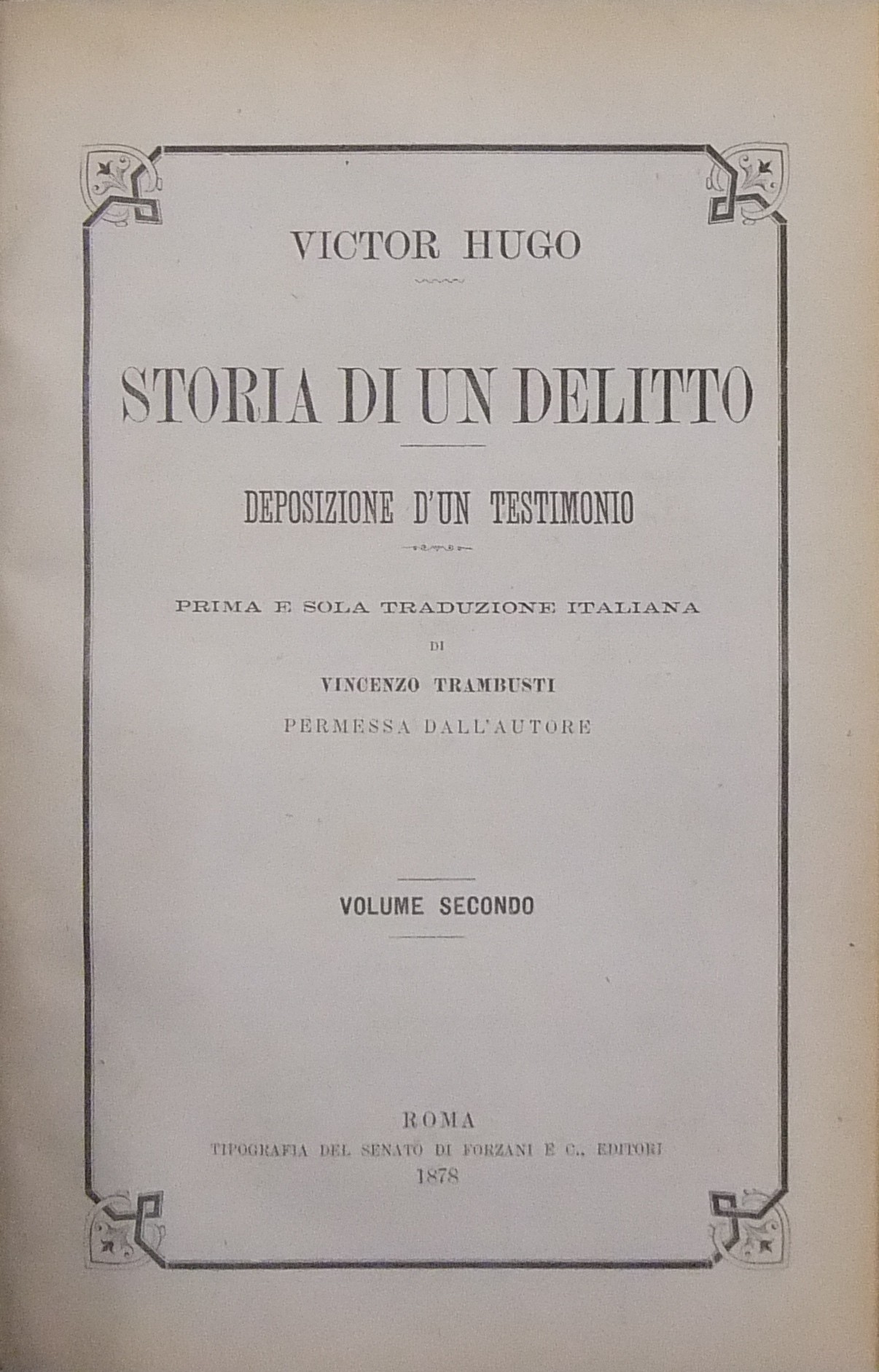 Storia di un delitto. Deposizione d'un testimonio. Prima e sola traduzione italiana di Vincenzo Trambusti permessa dall'Autore