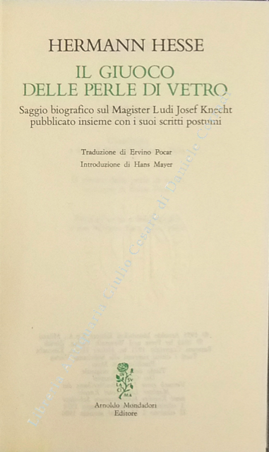 Il giuoco delle perle di vetro. Saggio biografico sul Magister Ludi Josef Knecht pubblicato insieme con i suoi scritti postumi. Introduzione di Hans Mayer