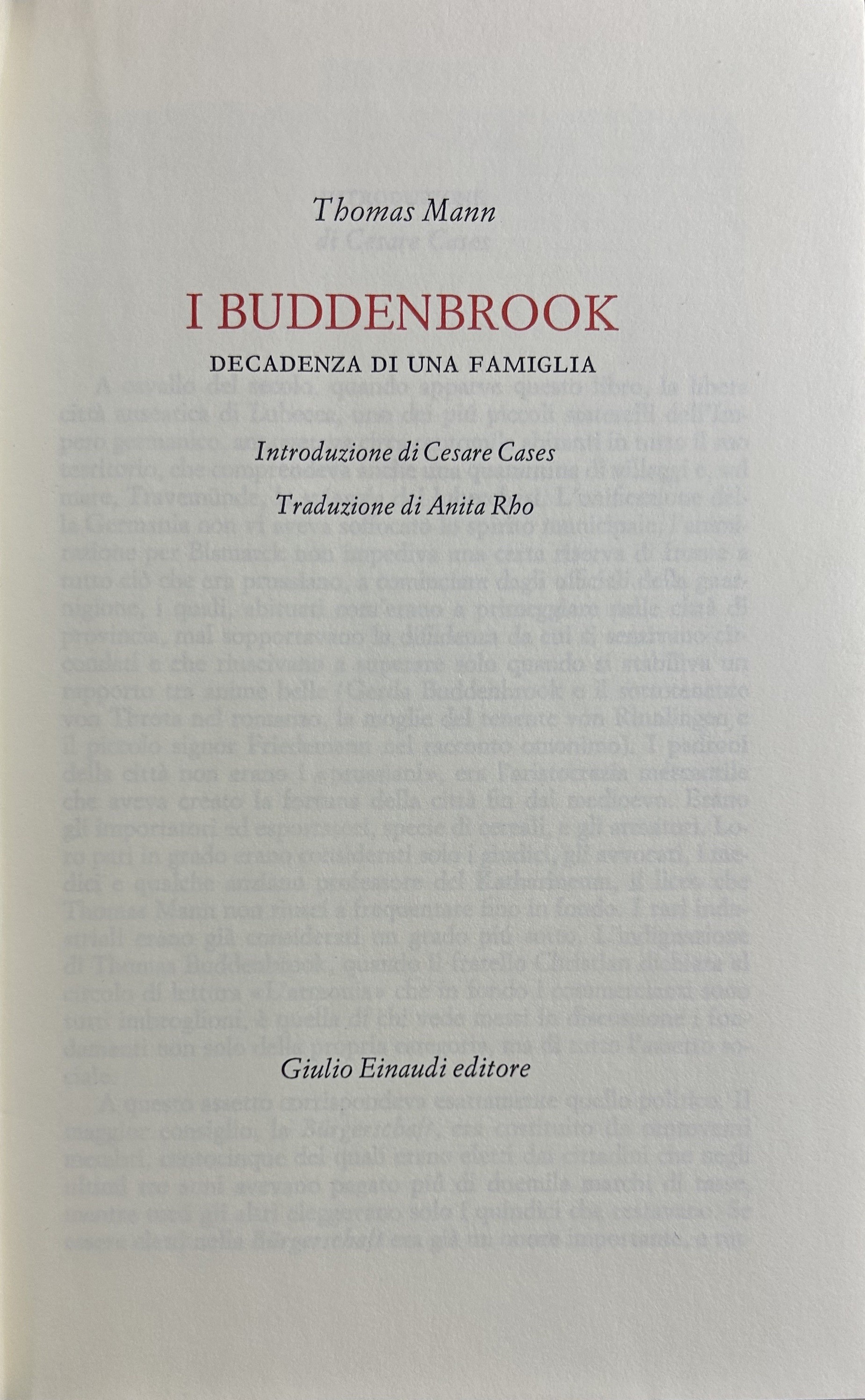 I Buddenbrook. Decadenza di una famiglia. Introduzione di Cesare Cases. Traduzione di Anita Rho