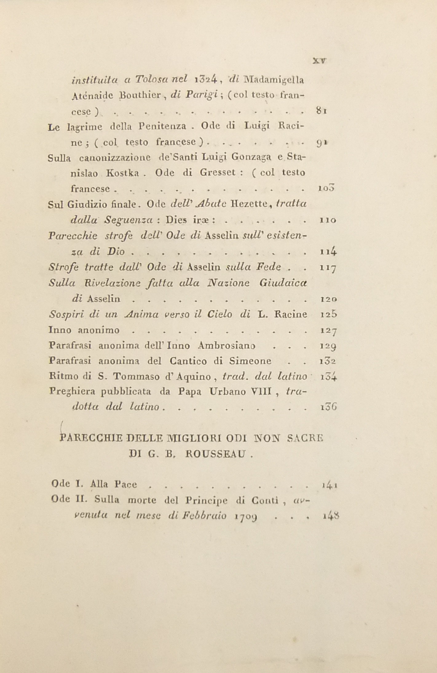 Odi sacre di Gio. Battista Rousseau. Altre sacre poesie di diversi autori e parecchie delle migliori odi non sacre dello stesso Rousseau. Tradotte dal francese in versi sciolti dal C.P.F.S. di A.