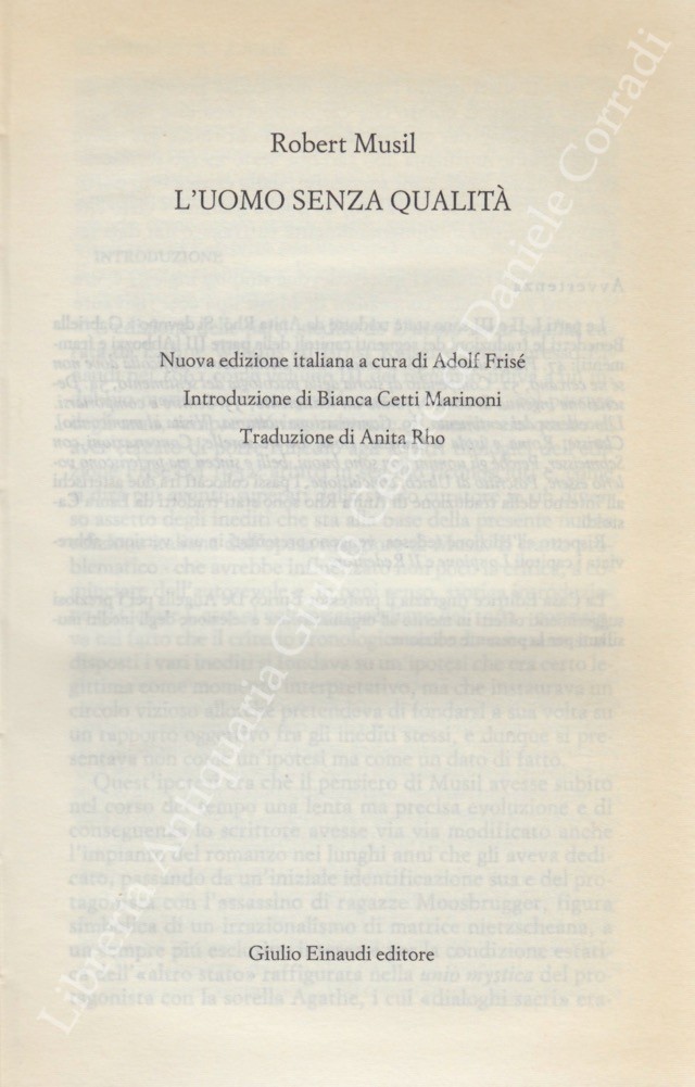 L'uomo senza qualità . Nuova edizione italiana a cura di Adolf Frisé. Introduzione di Bianca Cetti Marinoni. Traduzione di Anita Rho